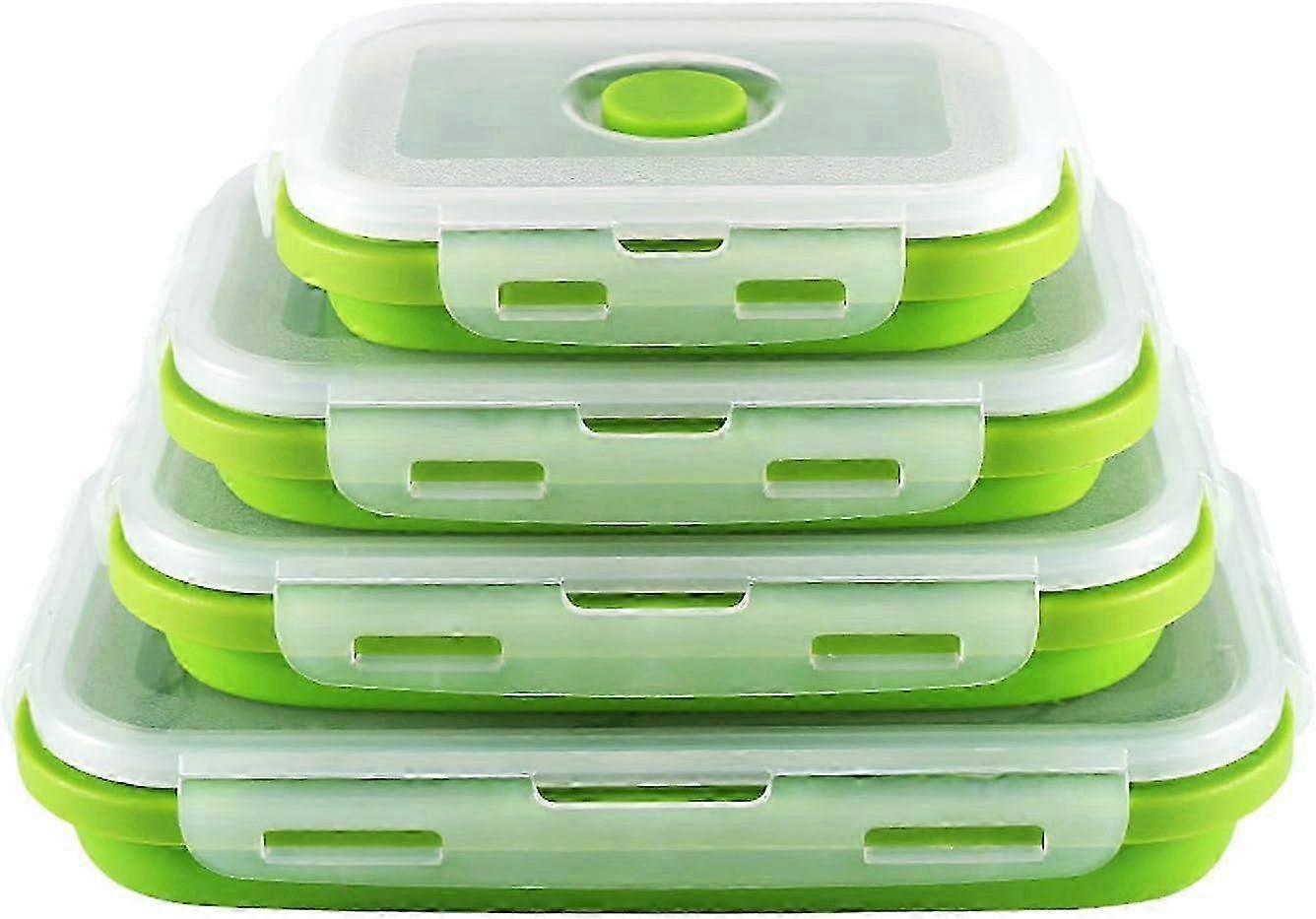 Collapsible Silicone Food Containers Airtight, Bento Lunch Box for Kitchen Camping, BPA-Free Eco-Friendly Green