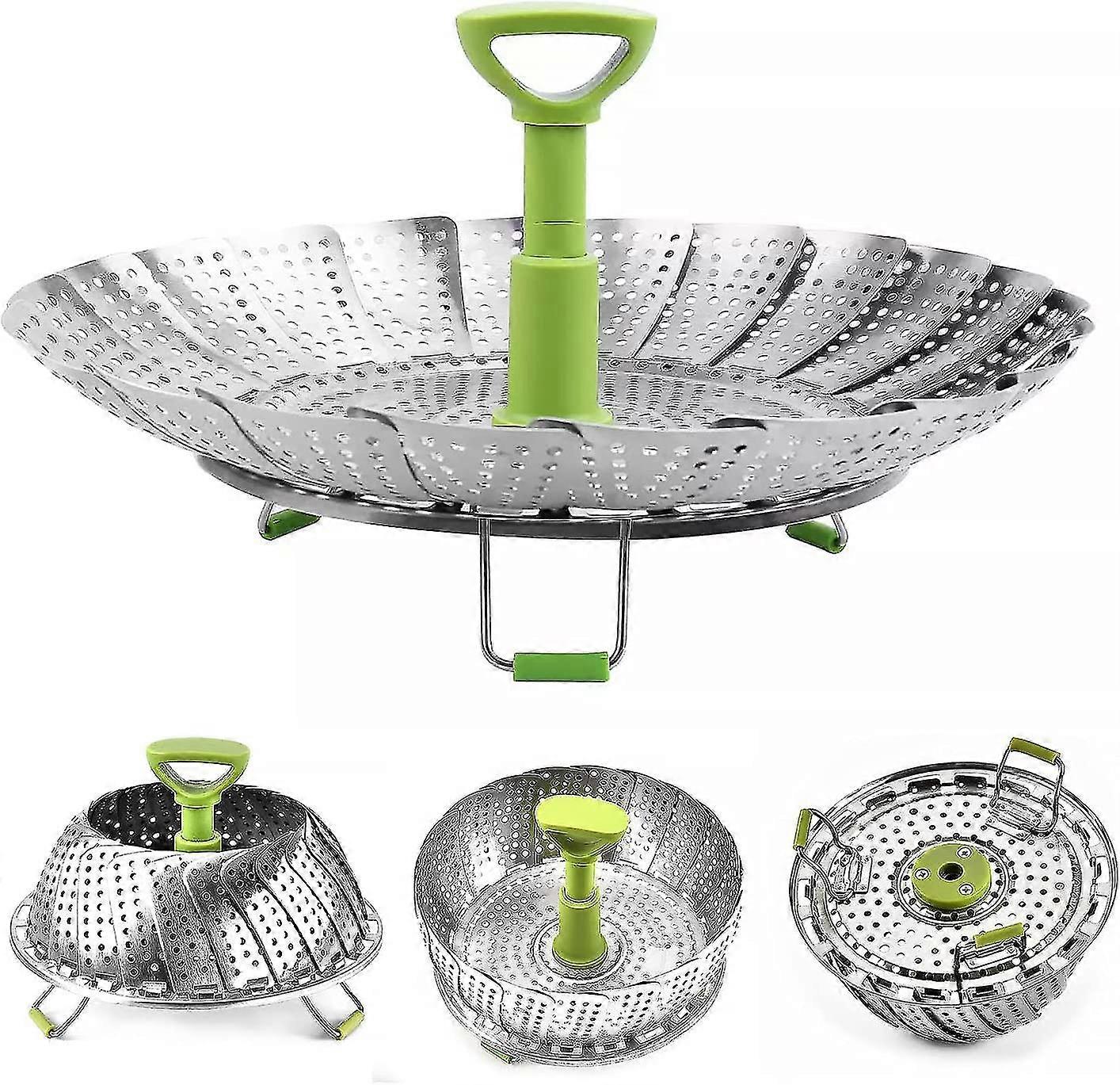 Collapsible Steamer Basket, Stainless Steel Collapsible Telescopic Steamer Basket, With Anti-hot Extendable Handle And Non-slip Feet, For Cooking Vege