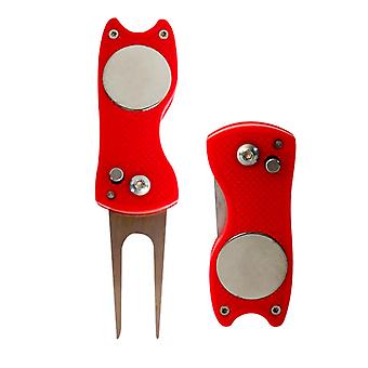 Collapsible Spring Golf Divot Repair Fork Ball Marker Alignment Tools Red