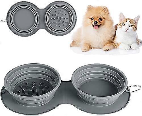 Collapsible Dual Cat Dog Food Bowls Portable Pet Bowls Non-Slip Silicone Mat Pet Bowls