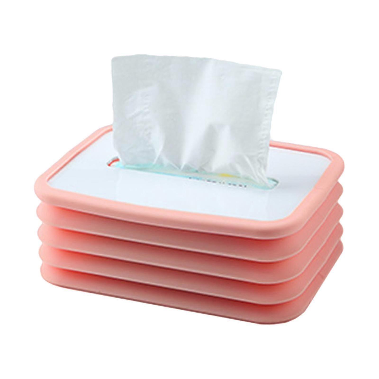 Foldable Tissue Box Holder, Portable Paper Towel Dispenser for Car, Home, Bathroom, Kitchen Storage, Pink