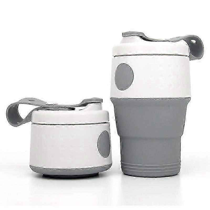 Foldable Travel Coffee Cup, 395ml Collapsible Silicone Mug, Reusable Portable Cup with Lid, Dishwasher Safe - Gray