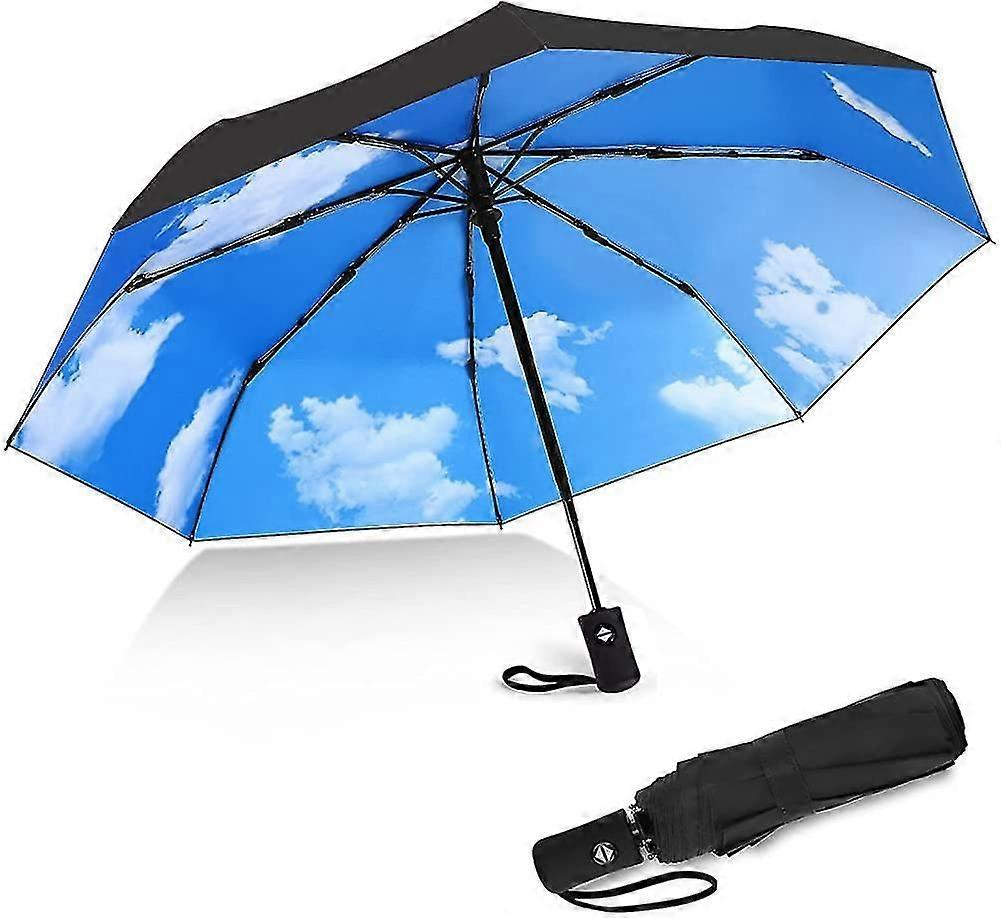 Folding Travel Umbrella Windproof Strong - 8 Ribs Uv Protection Umbrella Black.