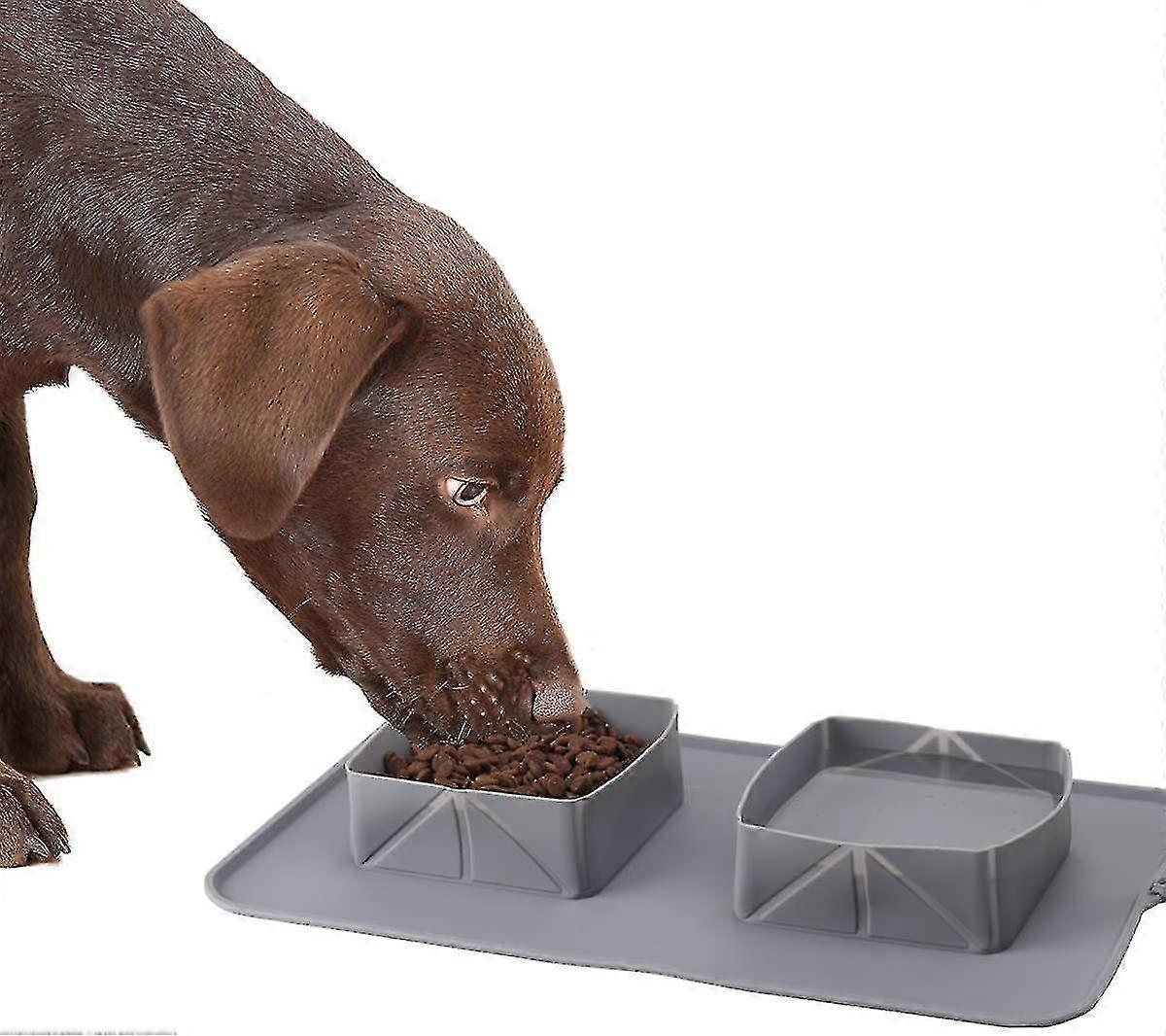 Foldable Portable Non-slip Dog Cat Travel Bowl 2-in-1 for Camping Picnics - Gray 38x23.5cm