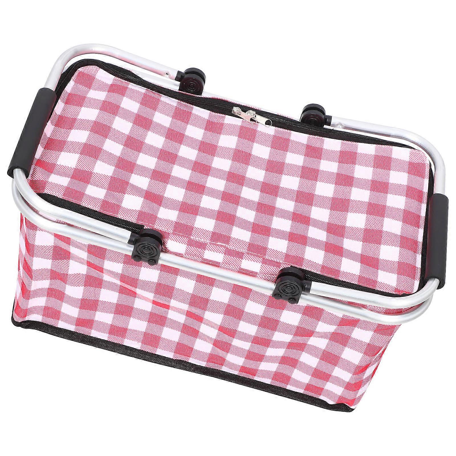 Foldable Insulated Picnic Bag Insulation Bag Red Plaid Large Capacity 46.00X28.00X24.00CM Meal Carrier 1Set