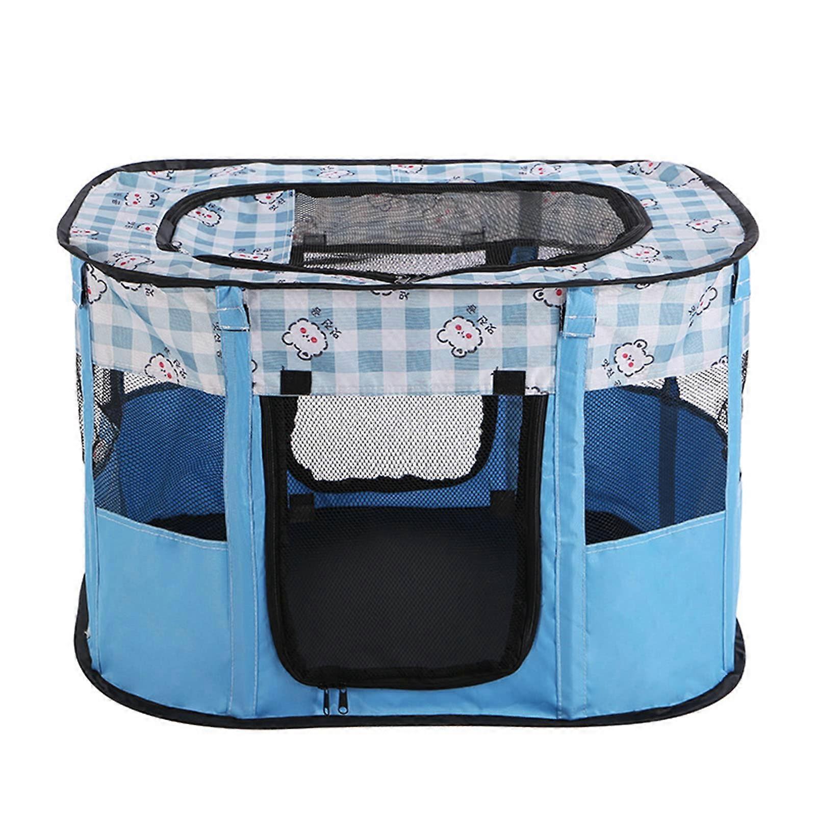 Foldable Dog and Cat Cage Fence Dog Cat Nest Tent Puppy Kitten Cage Suitable for Living Room Balcony Bedroom (Blue 73 x 57 x 50 cm) Blue 73*57*50CM