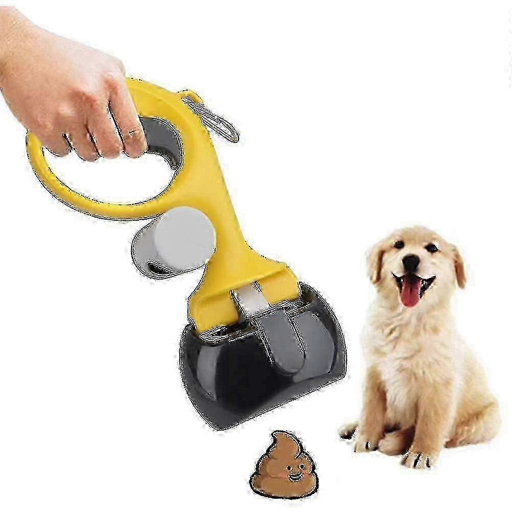 Foldable Dog Poop Scoop with Waste Bag Dispenser - Portable Yellow Waste Tool for Indoor & Outdoor Use