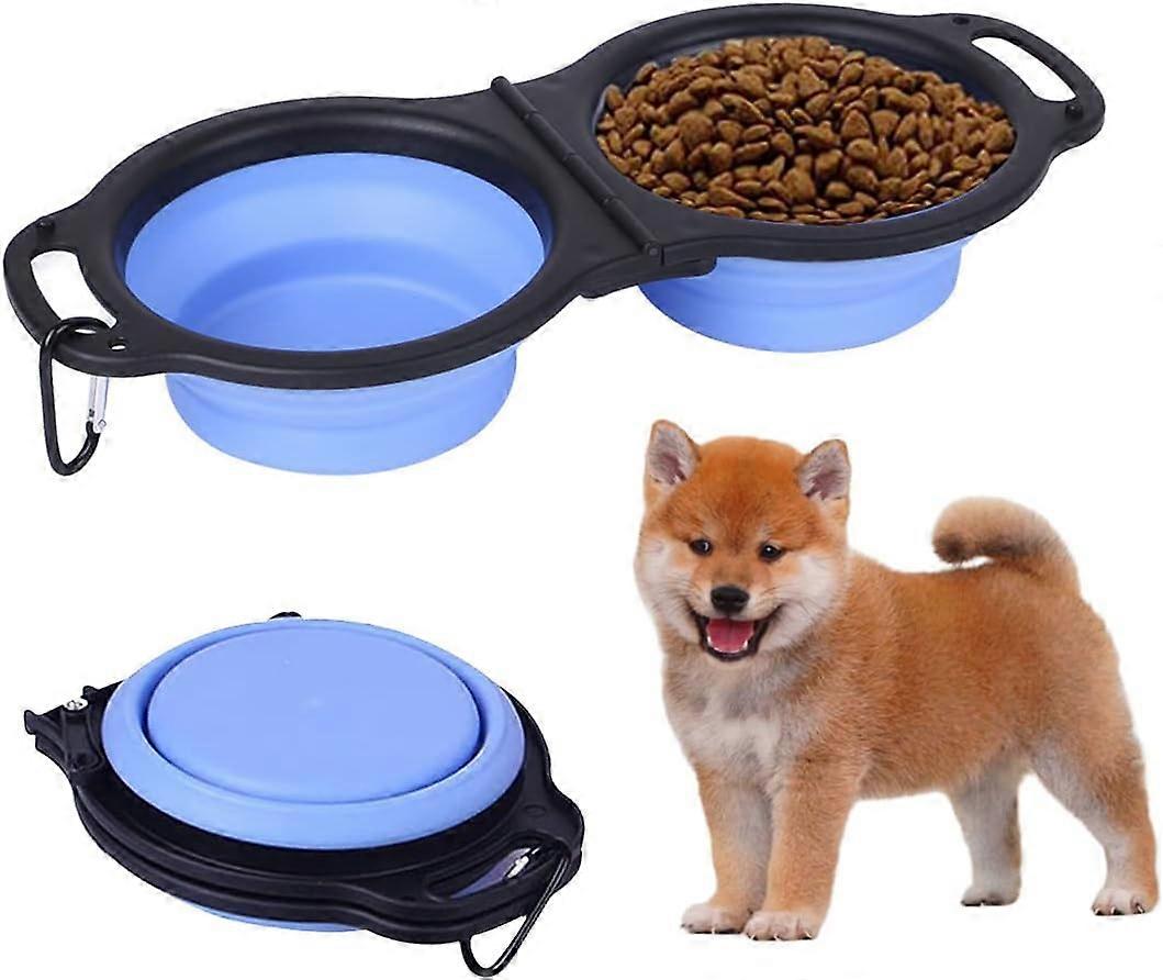 Collapsible Dog Bowl One Piece 2 in 1 Pet Feeding Bowl Portable Collapsible Dog and Cat Water Bowl Food Tray with Hiking Buckle Clip for Travelling, H