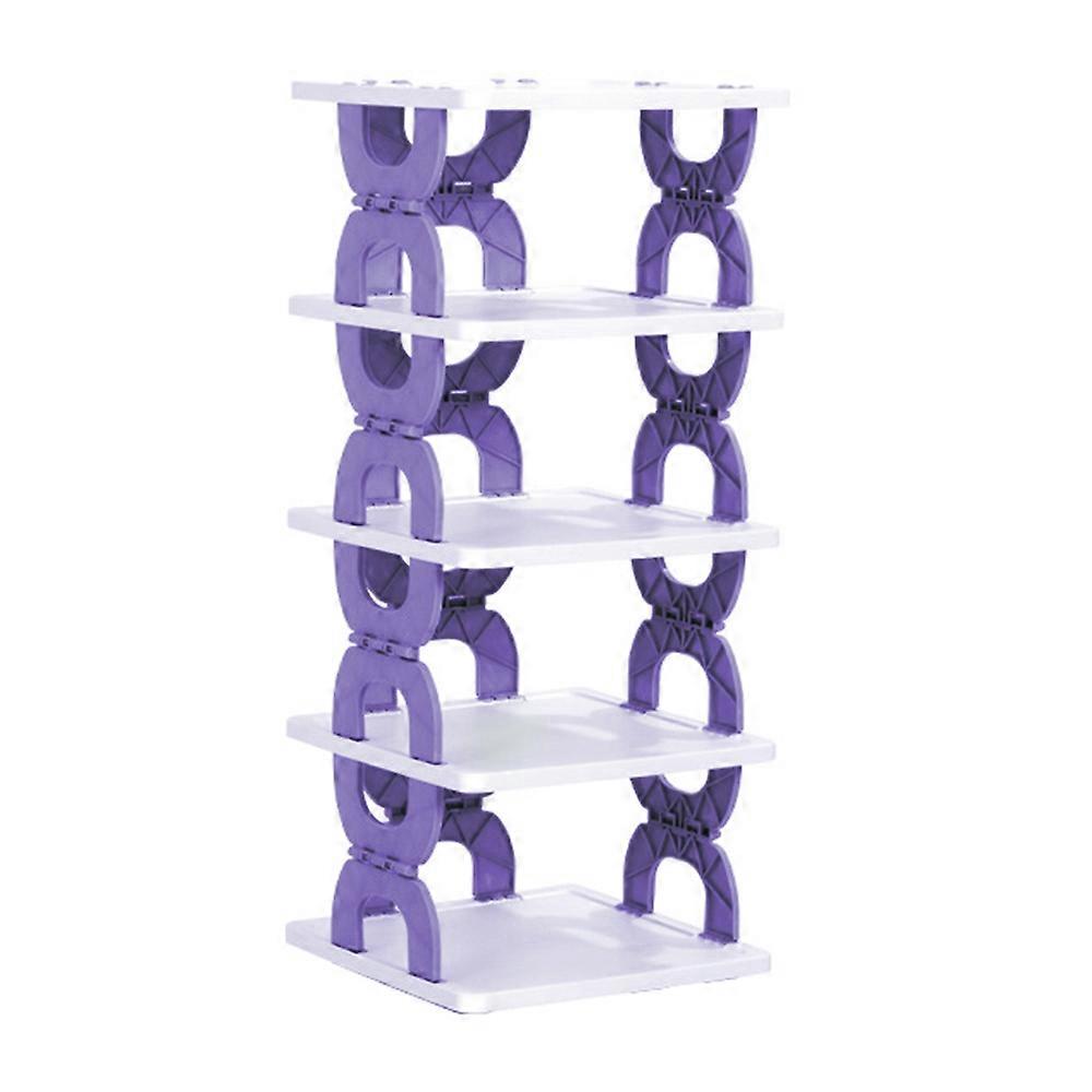 Foldable 5 Tiers Shoe Rack Organizer Home Entryway Bathroom Dorm PP Storage Shelf-Purple