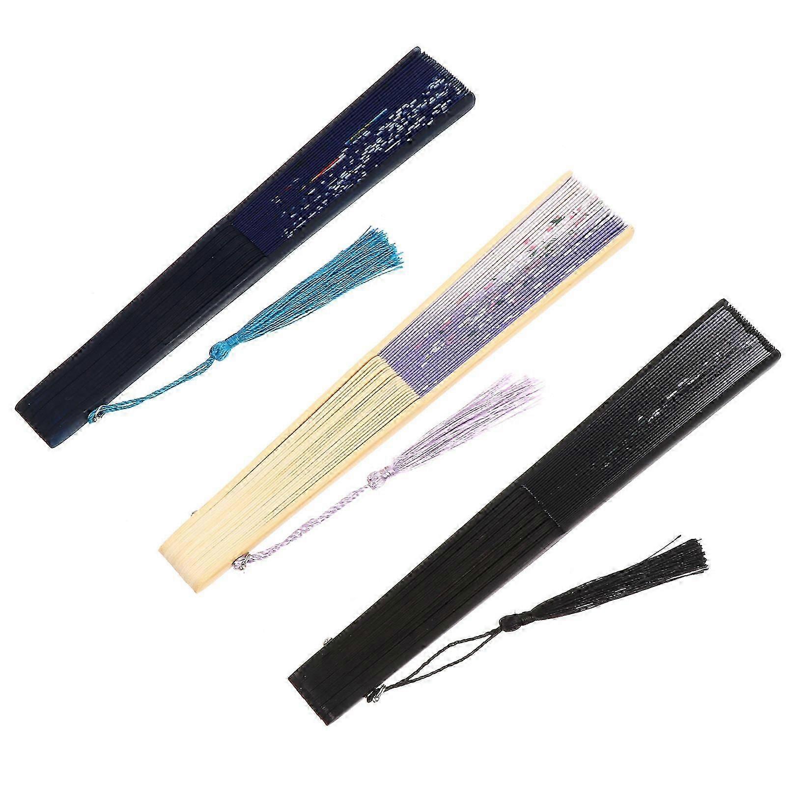 Folding Hand Fans Chinese Hand Held Folding Fans Wooden 37.5X21CM 3Pcs