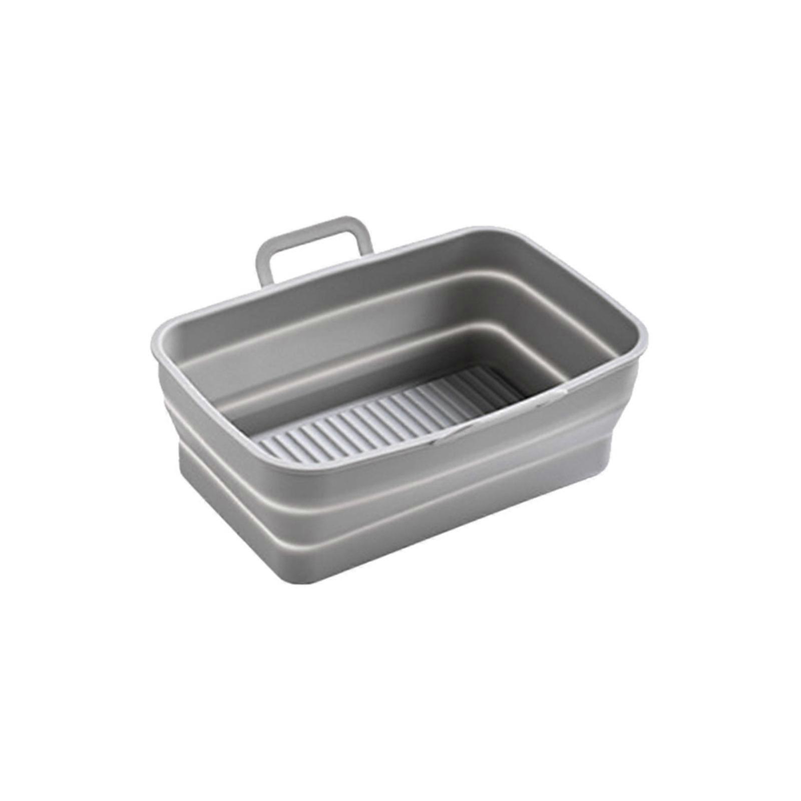 Foldable silica gel air frying pan Reusable Silicone Air Fryer Liner Rectangle Air Fryer Basket for Air Fryer Easy Cleaning Food Feature Cost Saving Still using disposable parchment paper? A worthy one-time investment will be rewarded by an ecofriendly & safe . Keeps your food fresh and refrains from any unnecessary fire hazards on highly parchment papers Best in Quality & Safety Made from the highest quality grade silicone. Quality material Our air fryer silicone pot is made from 100% food-safe grade silicone. It is non-stick, non-BPA, and highly heat resistant, withstanding temperatures up to 428F and down to -40F. Easy to clean Our silicone pot for the air fryer is soft and flexible, you just need to flip it inside out and wash it with warm water. The unique pattern design makes it easy for you to get of residual oil or grease when cleaning. It's also dishwasher safe. Versatile applications Our air fryer silicone bowl is not air fryer safe but also oven, microwave, freezer, and dishwasher safe. It can not be used as air fryer accessories, but also as a fruit plate Better choice This air fryer silicone basket is specially designed with dozens of soft silicone lines for better air circulation and even heat distribution to cook your food crispy The dimension is 7.7*5*2.76inch, and it fits 8QT double basket air fryers. Practical design Our silicone liner for the air fryer is designed with handles on both sides to protect your hands from burns when taking out it. And it helps the oil in the food of the tray while cooking, preventing the food from being soaked in oil. Size19.5x12.7x7cm/7.7X5X2.76inch 1xAir frying pan Note: There could be some slight differences in the color tone of the pictures and the actual item. Please allow 1-2mm differs due to manual measurement, thanks.