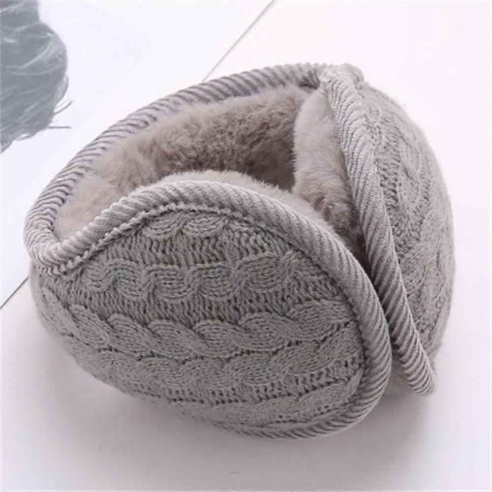 Foldable Ear Warmers Adjustable Knitted Earmuffs with Fuzzy Fleece Lining (Gray)