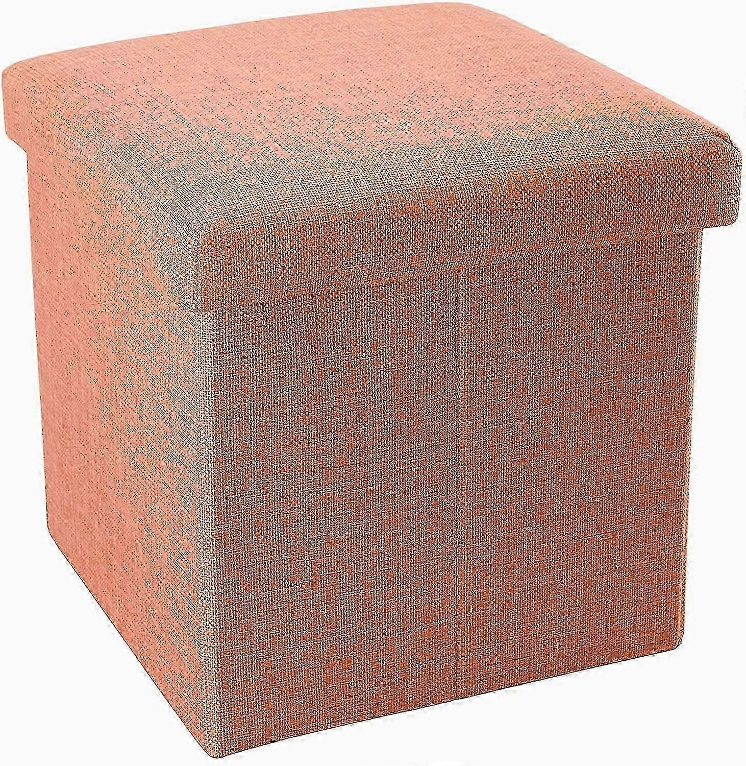 Foldable Pouf 30x30x30 cm in Mandarin Orange Decorative Storage Box in Linen Look Fabric to Save Space Chest Stool Seat