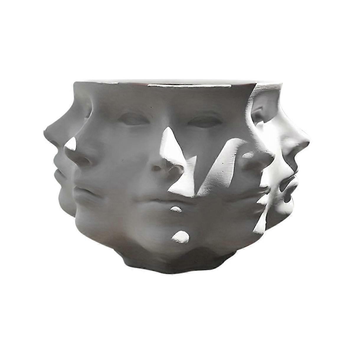 Abstract Style Flowerpot Vase Mould Multi-Faceted Human Face Flower Pot White