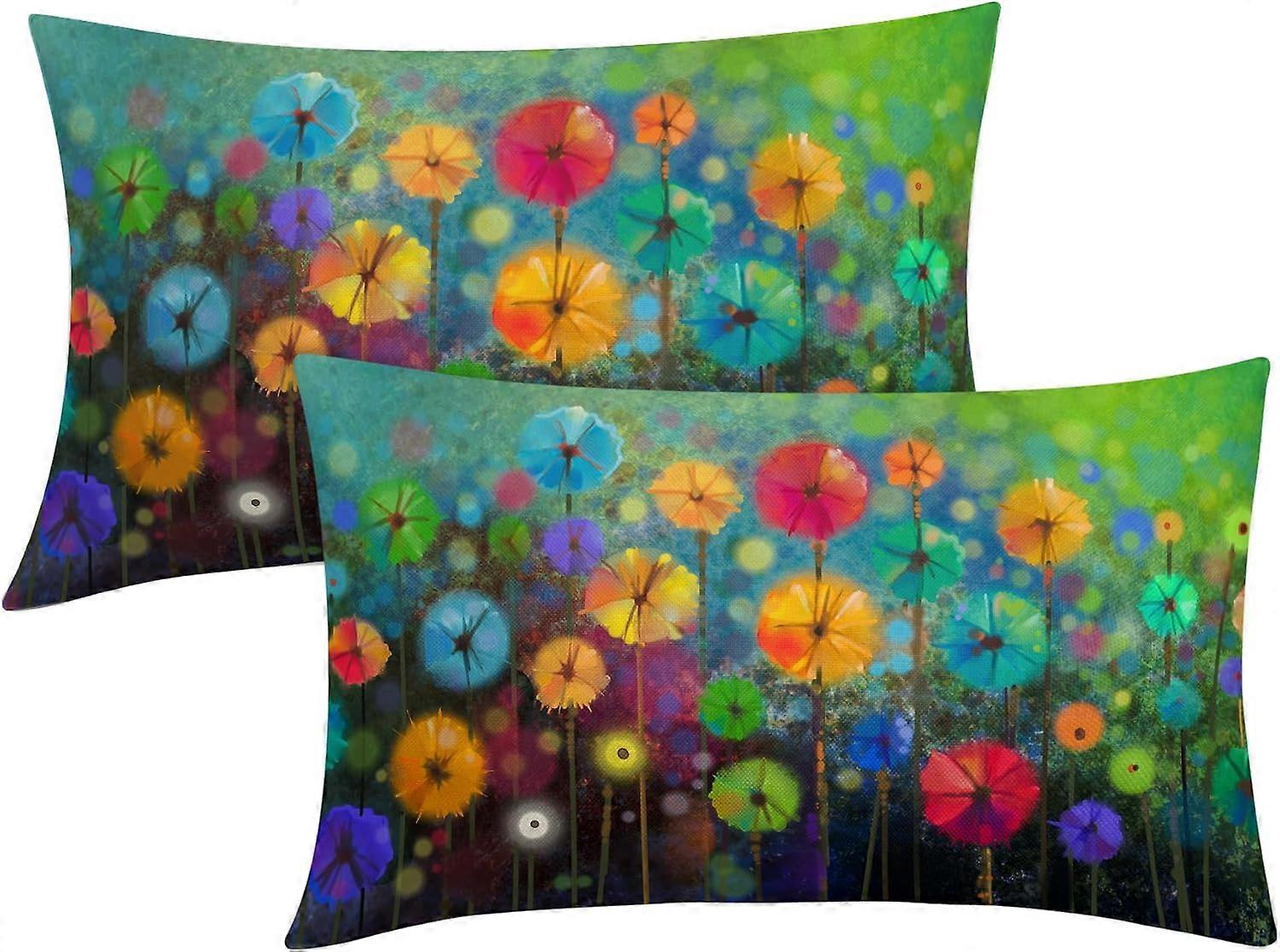 Abstract Floral Watercolor Lumbar Pillow Covers 12X20 Inch Spring Colorful Petal Flowers Decorative Pillow Cases Farmhouse Cotton Linen Throw Pillows