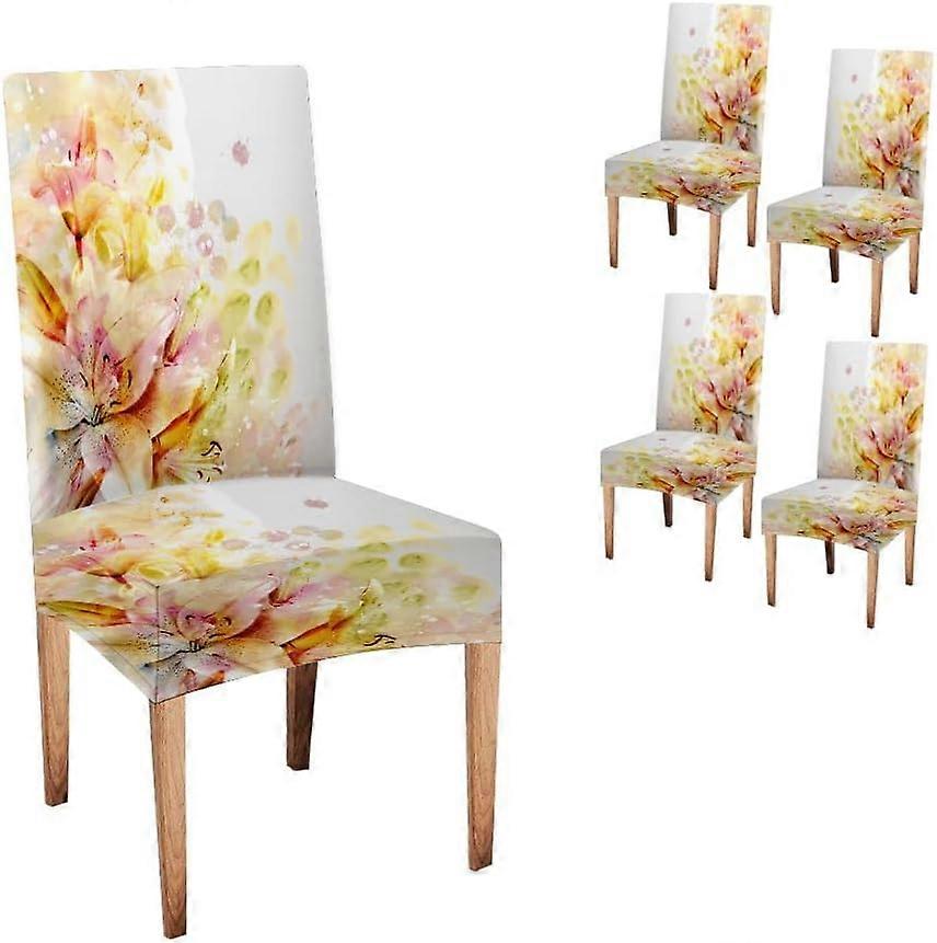 Abstract Wild Flower Parson Chair Slipcovers 4 Pack Watercolor Painting Pastel Lilies Dining Chair Seat Slipcover for Hotel