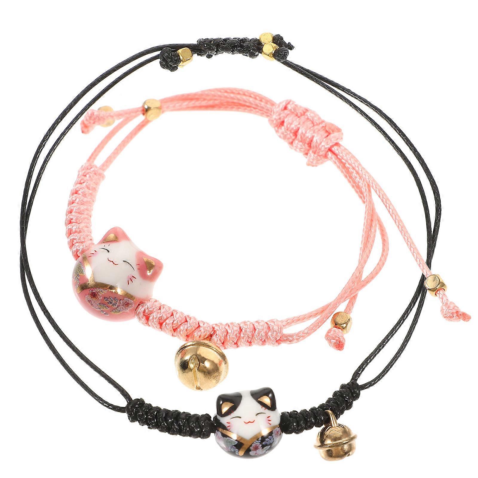 Maneki Neko 2Pcs Braided Bracelet Fortune Cat Charm Adjustable Bracelet