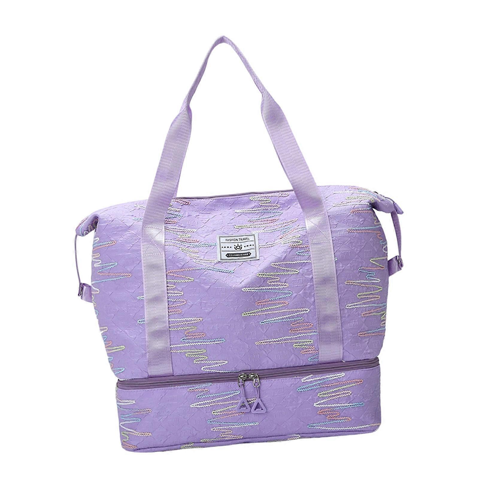 Multipurpose Waterproof Travel Organizer Bag With Expandable Compartment Removable Wet Pocket And Luggage Strap For Sports Yoga Trip Purple