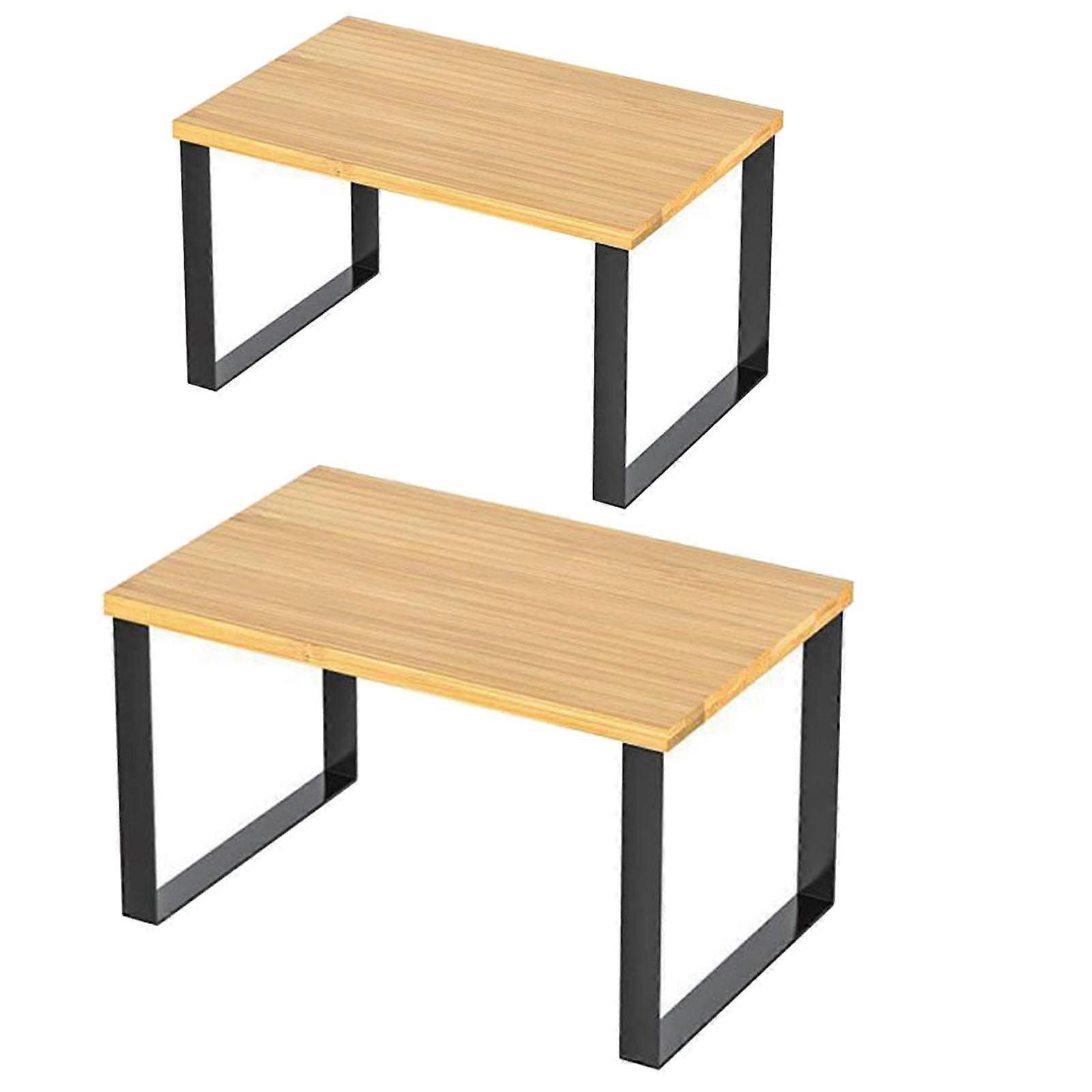 Expandable Metal Kitchen Counter Shelves Kitchen Storage Solution Effective Metal and Wood Counter Shelf Organizers Black
