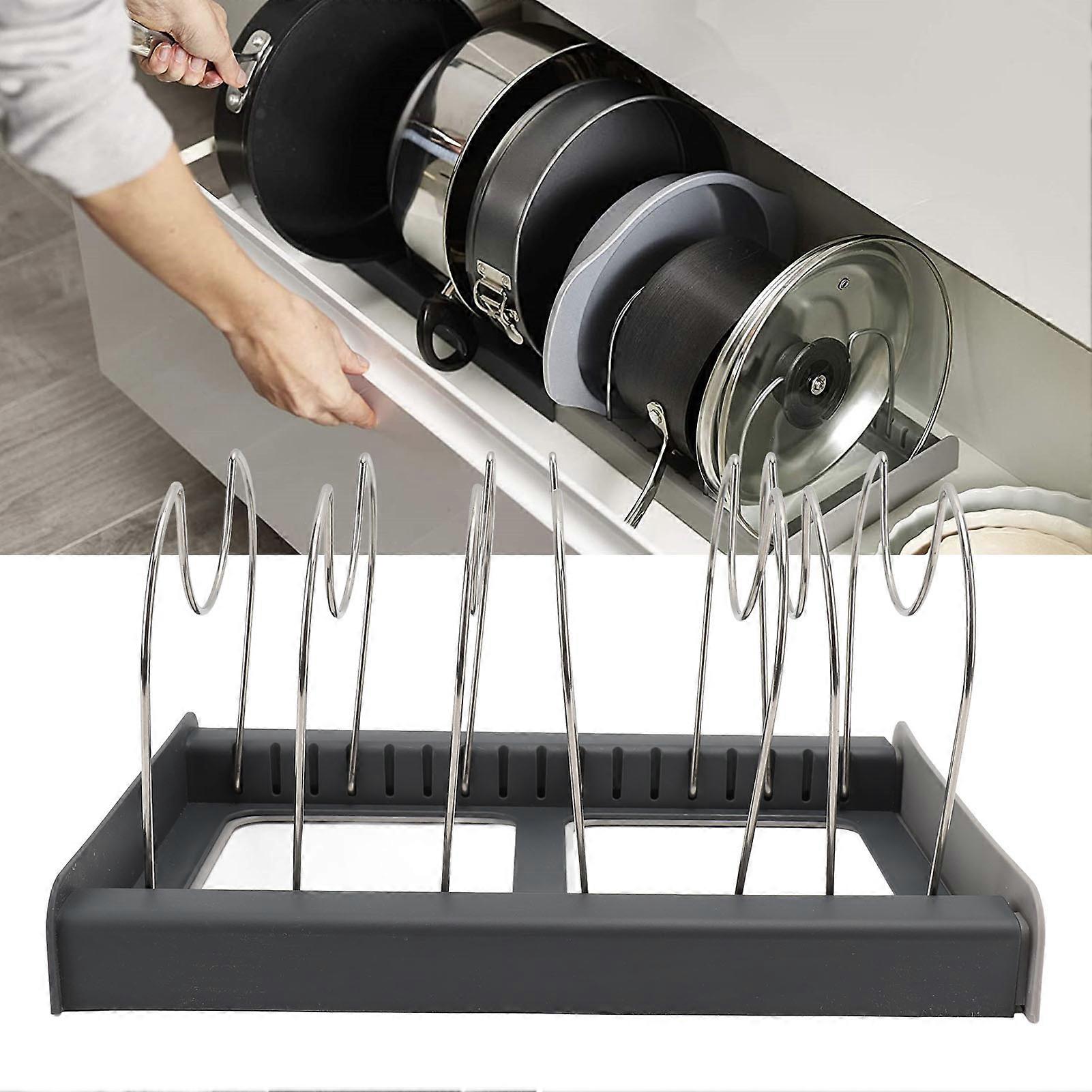 Expandable Pot and Pan Organizers Rack Kitchen Cabinet Pantry Bakeware Holder Shelves Lid with 7 Dividers