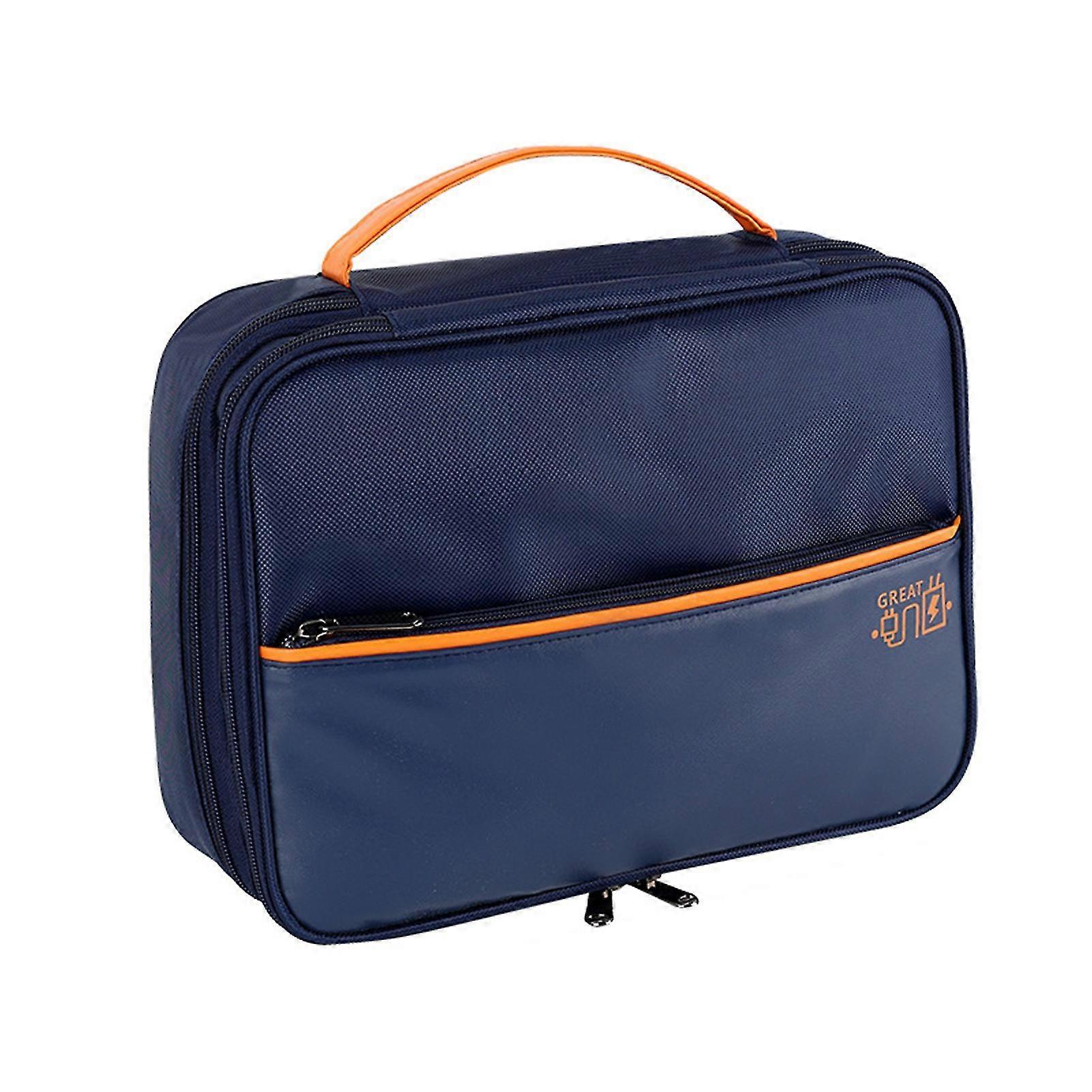 Digital Storage Bag Easy to Carry Multi-layer Compartment High Capacity with Handle Removable Partition Cable Organizer Bag for Home-L-Navy Blue