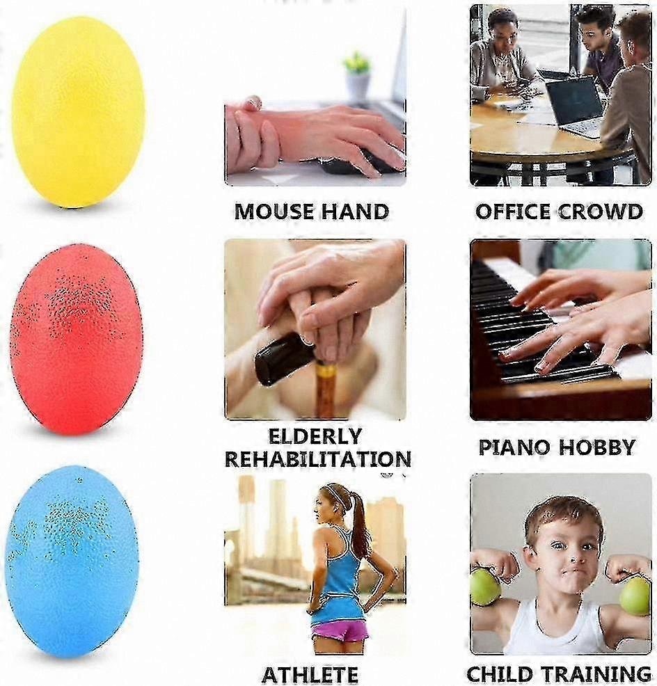 Egg-shaped grip balls with 3 resistance levels: Each ball is washable and can be cleaned with water. The hand exercisers are portable and can be used anytime, anywhere. This set is designed to support overall grip strength and finger flexibility training.