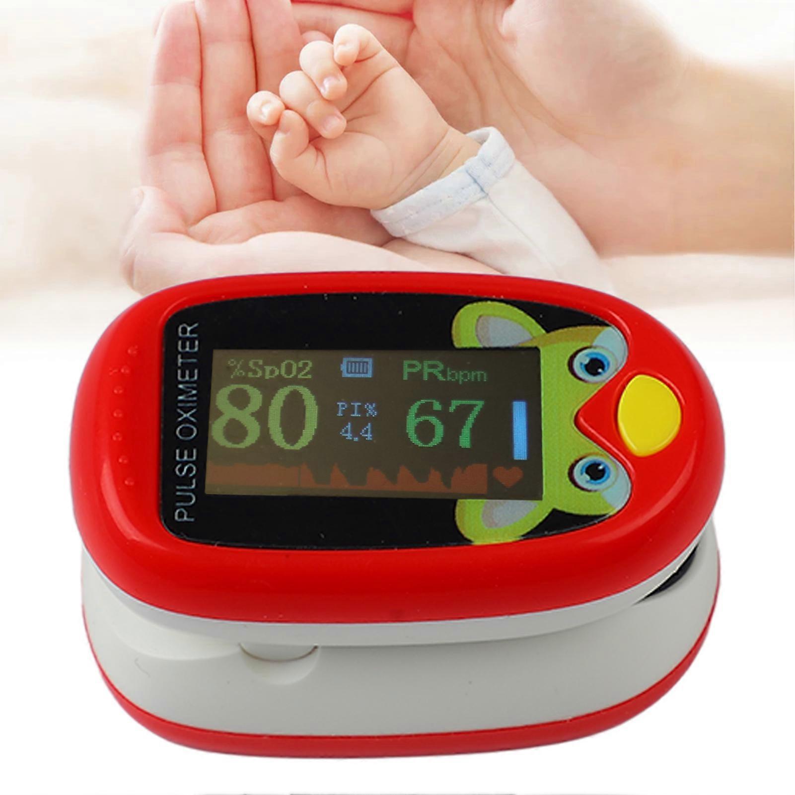 Fingertip Clip Oximeter 6 Modes Automatic USB Charging LED Blood Oxygen Monitor for Children Kids Red