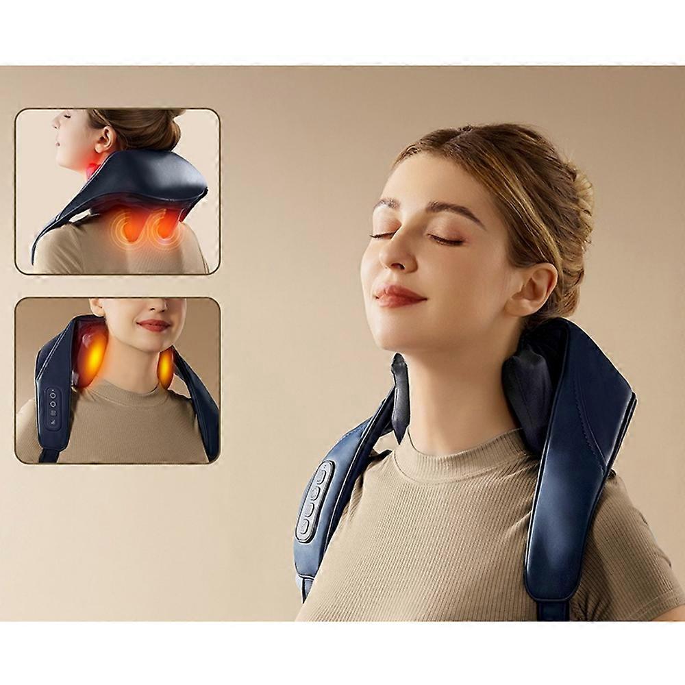 About this item: [Upgraded Heating Function]: The neck and shoulder massager now comes with two additional heated massage nodes, bringing the total to three heated areas. This delivers enhanced heat therapy and massage for relieving neck and shoulder pain. The heating system features two adjustable temperature settings (45 /50 ) and incorporates advanced NTC overheat protection, along with a 10-minute automatic shut-off for added safety. [Personalized Massage Experience]: Equipped with upgraded 3D kneading technology, the massager replicates professional massage techniques to deeply relax your neck and shoulder muscles. With adjustable settings for intensity and massage modes (2 intensity levels and 2 modes), you can tailor your massage session to match your preferences and specific needs. [Ergonomic Design]: The neck massager is designed with a broader massage head to accommodate different body shapes and shoulder widths. Its ergonomic construction conforms to your shoulders natural curve for a more comfortable and targeted massage. Adjustable, extendable straps allow for two usage options: handheld or clip-on, so you can choose the most convenient way to enjoy your massage. Lightweight and Portable: Weighing just 1500g, the neck and shoulder massager is easy to carry and perfect for use on the go. Crafted from premium PU leather and featuring a breathable, removable, and washable mesh cover, it combines style with functionality. It makes a thoughtful gift for loved ones on occasions like Christmas, Thanksgiving, Father's Day, Mother's Day, or Valentine's Day.