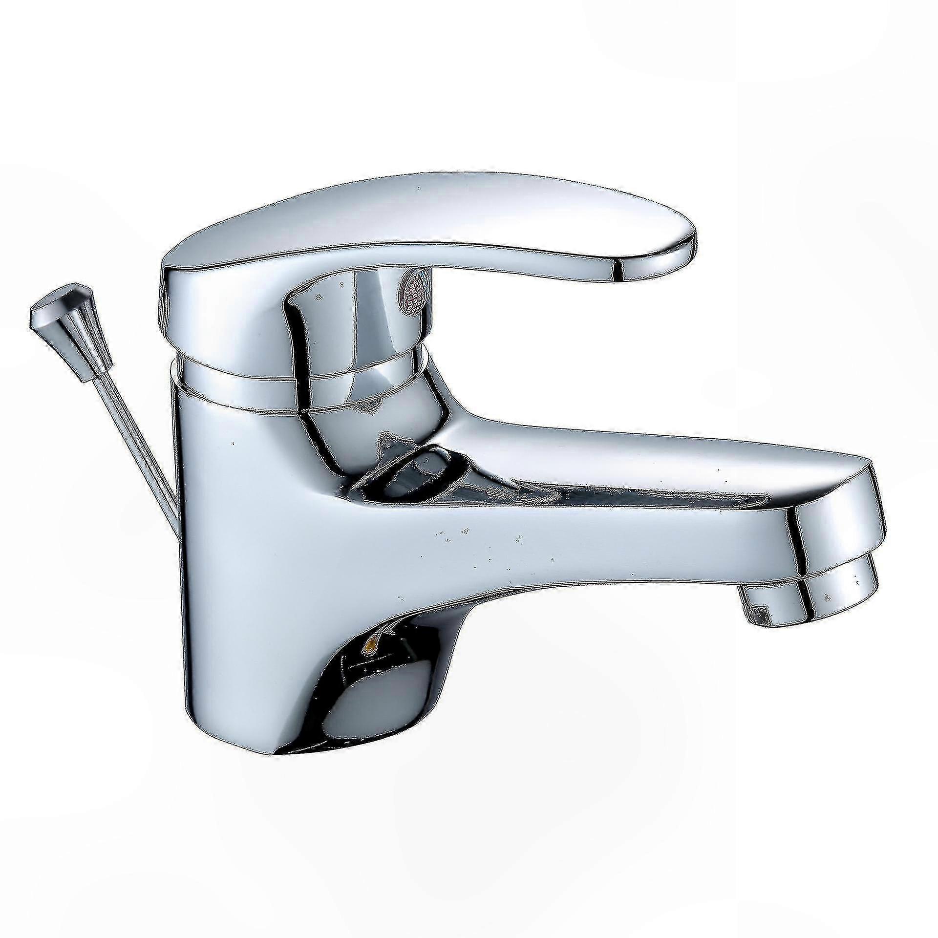 Chrome Bathroom Faucet with Drain Pull, Single Lever Basin Mixer, Removable Aerator, Brass Construction