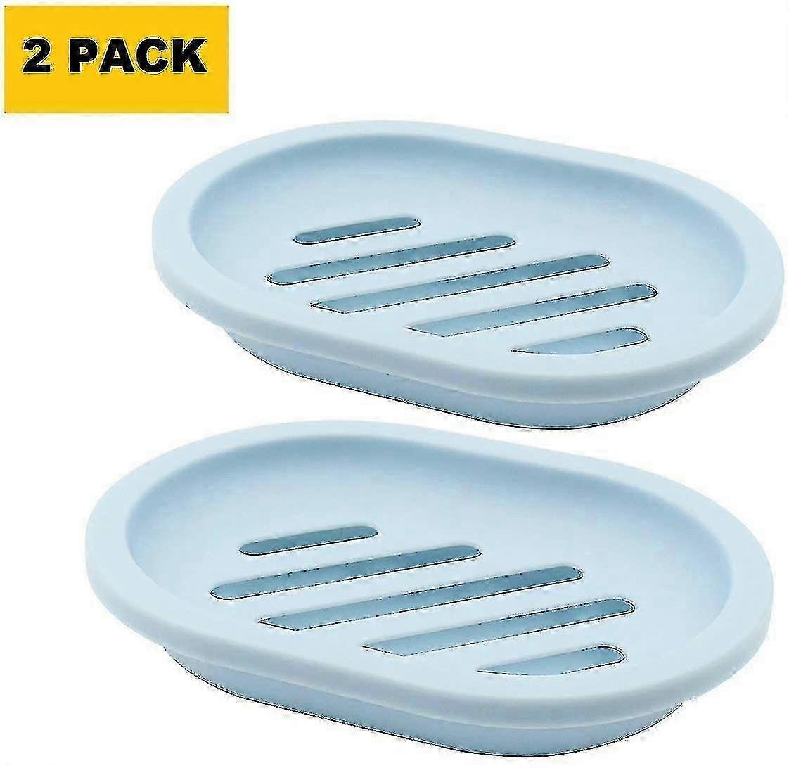 2-pack Soap Dish With Drain, Soap Holder, Soap Saver, Easy Cleaning, Dry, Stop Mushy Soap (blue)--