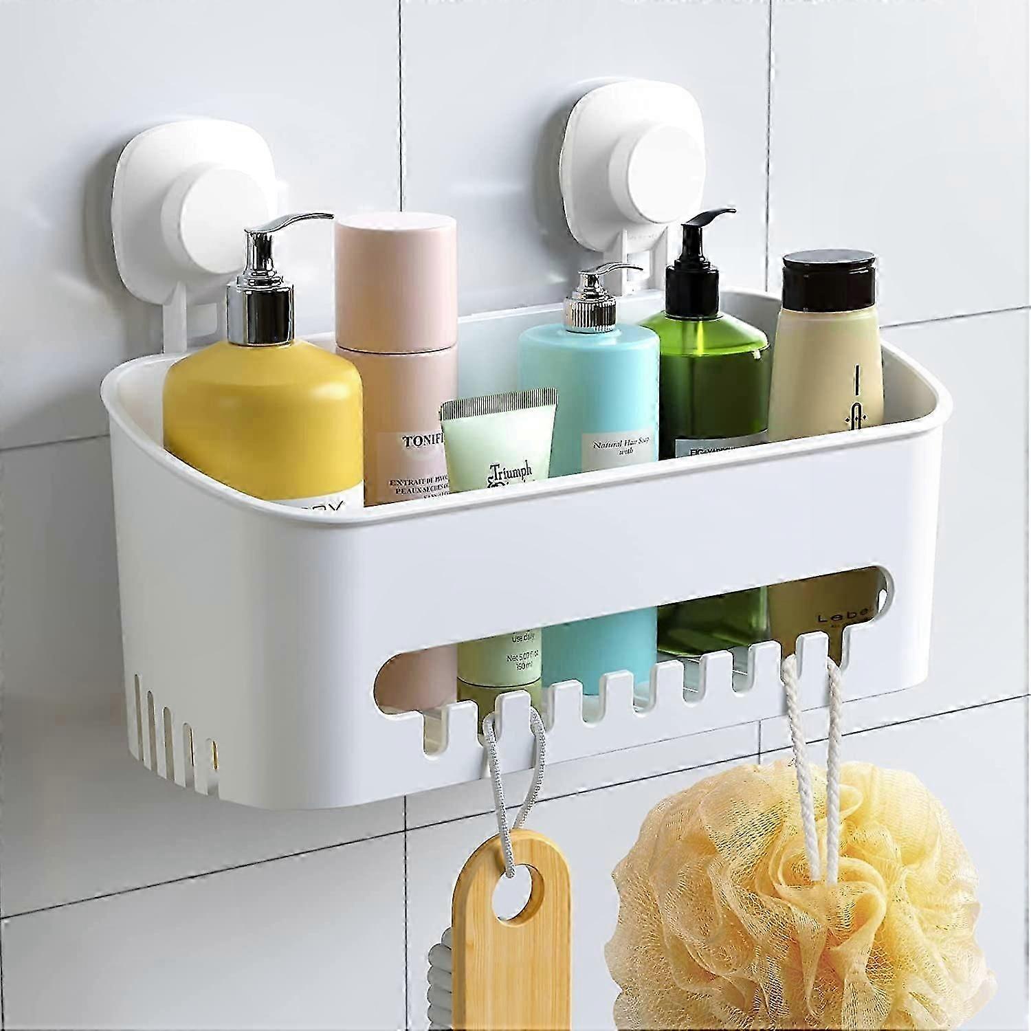 Suction Cup Shower Basket with Drain, No Drilling Needed, Waterproof Bathroom Shelf for Hanging Essentials
