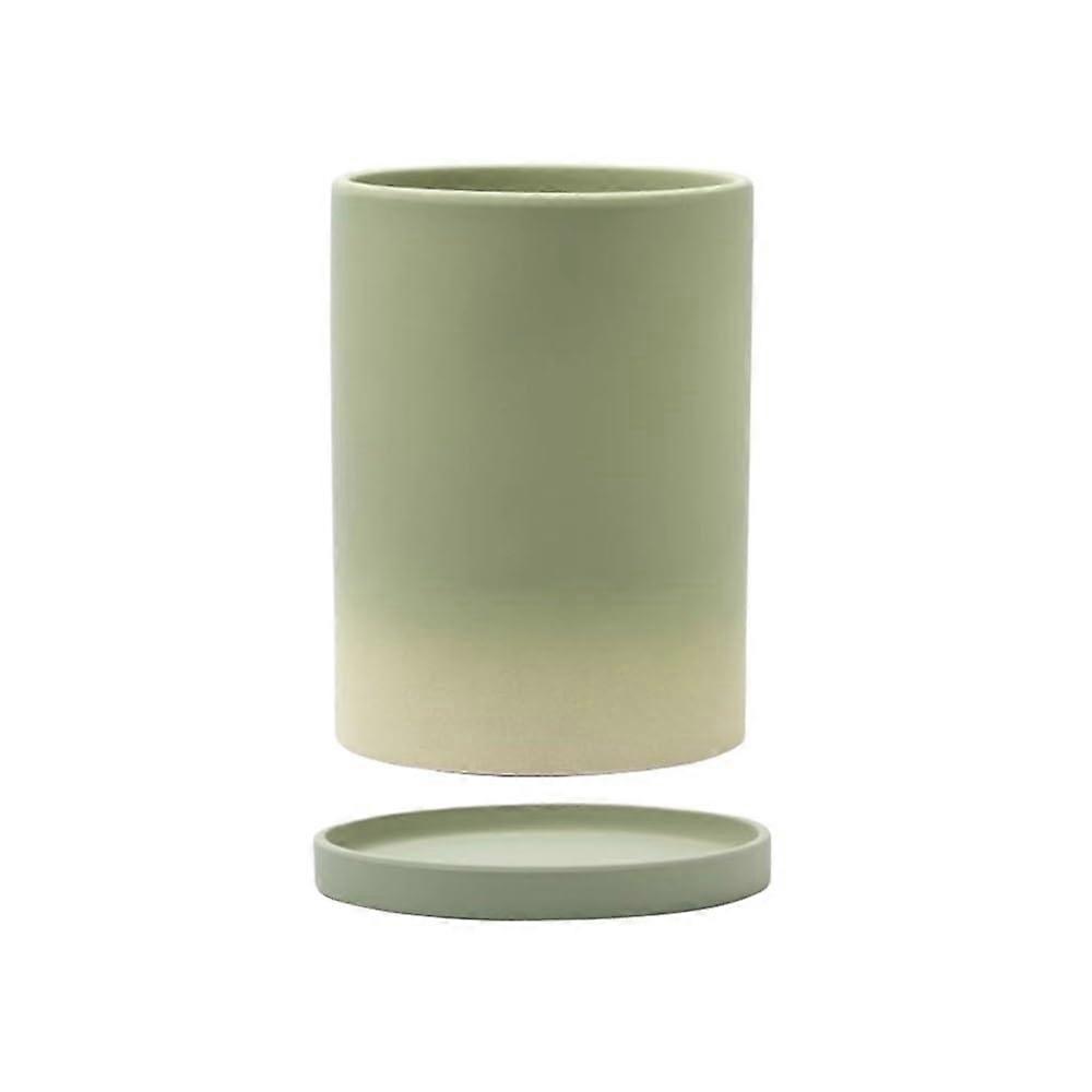 Cylindrical Green Ceramic Plant Pot for Indoor Flowers with Drainage Hole & Tray, 6-Inch Planter for Living Room & Garden