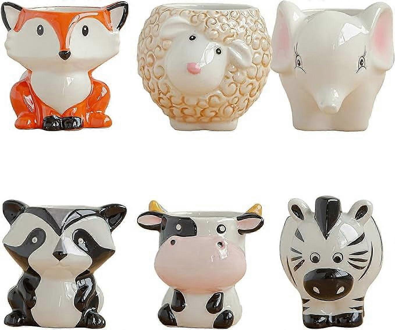 Cute Animal Succulent Planter Pots with Drainage Hole, Cartoon Cow Elephant Ceramic Flower Pot Set for Indoor Outdoor Home Office Decor