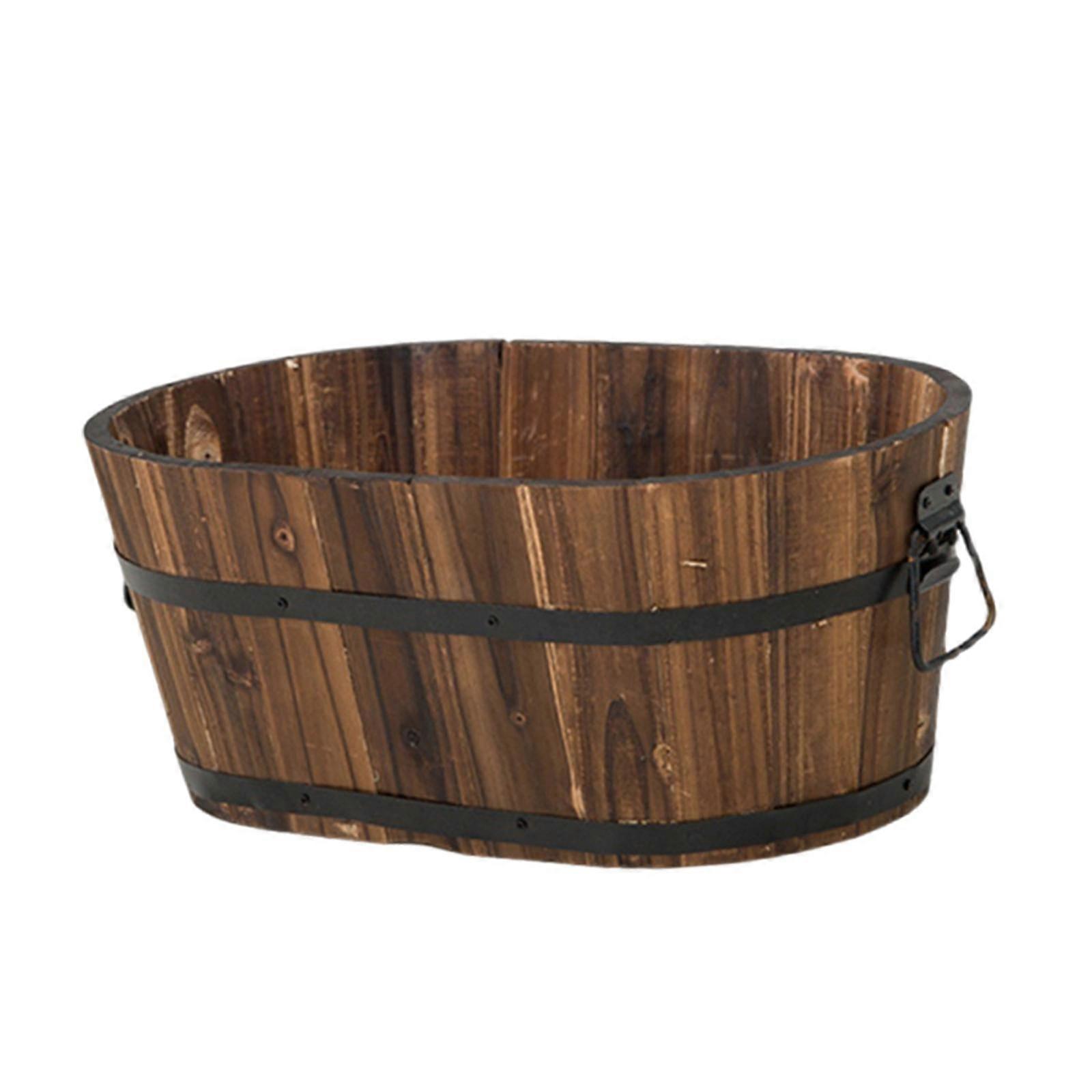 Wooden Barrel Planter with Drainage Hole Multipurpose Plant Container Farmhouse