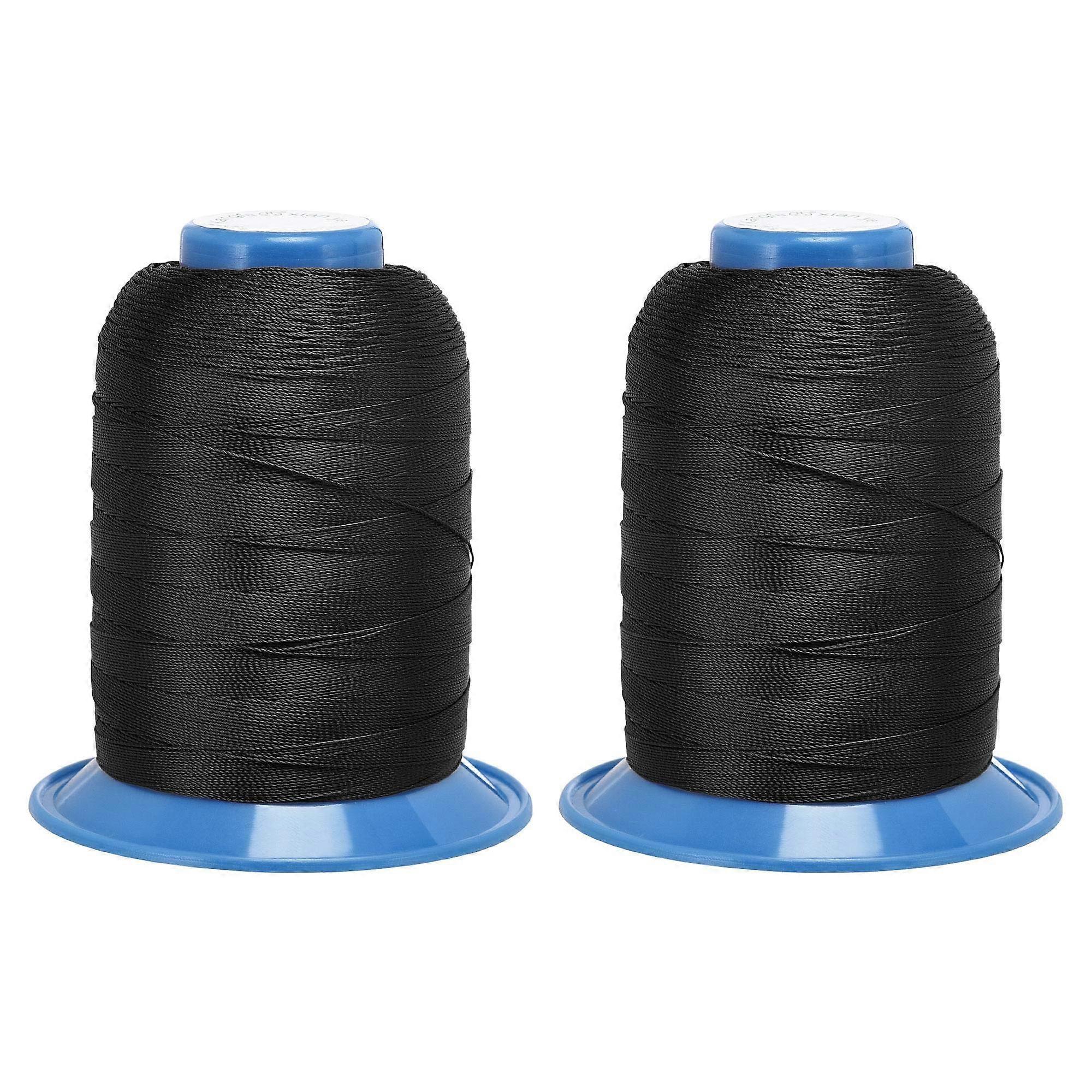 Bonded Polyester Sewing Threads 870 Yards 300D/0.38mm Extra Strong Upholstery Thread for Manual and Machine Sews (Dark Black, 2pcs)