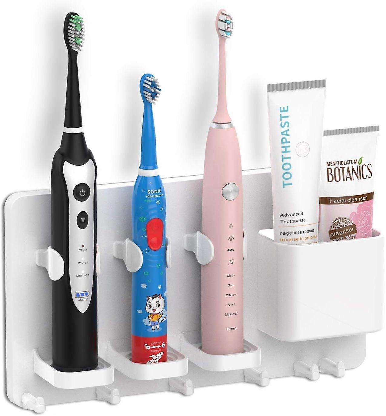 Adhesive Electric Toothbrush Holder, Wall Mounted Razor Hanger Bathroom Organizer Box ,ABS (White)