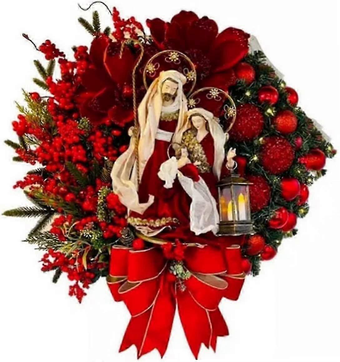 Improved Title: "Christmas Door Decorations: Hanging Berry Garland with Xmas Jesus Wreath, 25x22cm