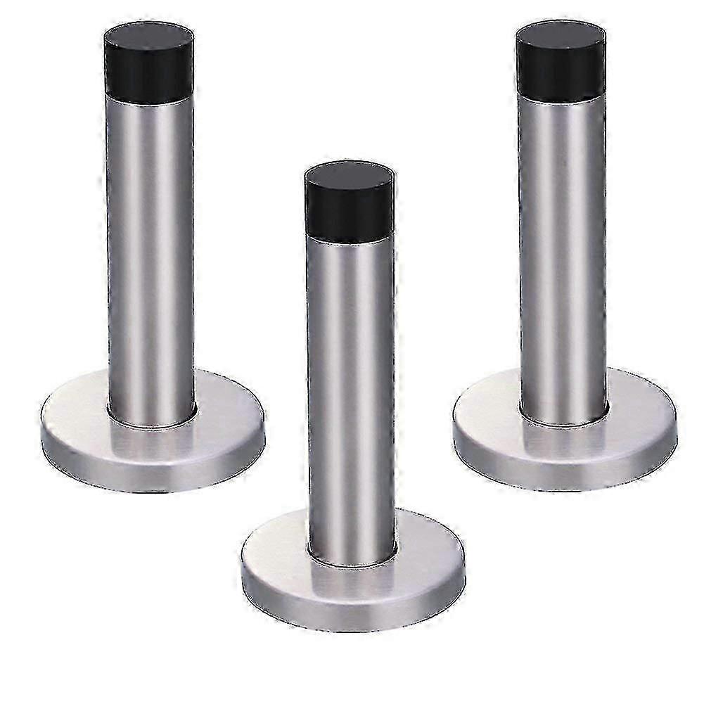Improved 3 Pack Chrome Door Stoppers, Wall Mounted - Set of Door Stops