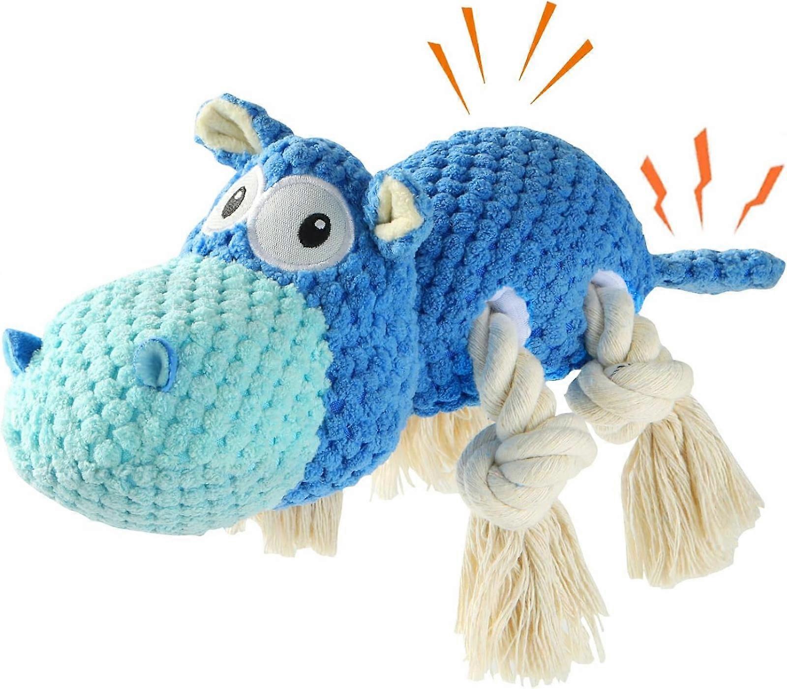 Dog Toys for Aggressive ChewersTOOPTATE plush dog chew toys are tough and durable, specially designed for large dogs, such as Labrador Retriever, Golden Retriever, Beagle, French Bulldog, Boston Terrier, Pembroke Welsh Corgi, etc. The fabric used are specailly selected by us for its durability and strength. Reinforced seams and a chew-resistant lining make them durable enough to withstand the strongest bite ability and last a long time.Keep Them BusyOur squeaky dog toys are packed with large squeaker in the body and crinkle paper inside the hippo's tail, made to make noices and attract your dogs. Your furry friends will enjoy finding the source of the squeaking and reduce their boredom, which can entertain your curious dogs. These fun interactive toys are perfect gifts to keep them busy.Upgraded Safe MaterialsMade of premium materials and filled with upgraded PP-cotton, these stuffed dog toys are tough but soft enough to chew. They are tooth-friendly. Chewing won't harm dogs' gum but keeps their teeth and gums clean. Come to pick a plush toy to promote their dental health.Dogs' Favourite ColorDogs can only discern blue and yellow, but BLUE stands out most. Our toys are specially designed in blue so that dogs can distinguish the blue toy over other dog toys, which makes them playing more fun. So, buy this cute blue toy with their favourite color for your furry friends and improve their mental wellbeing.