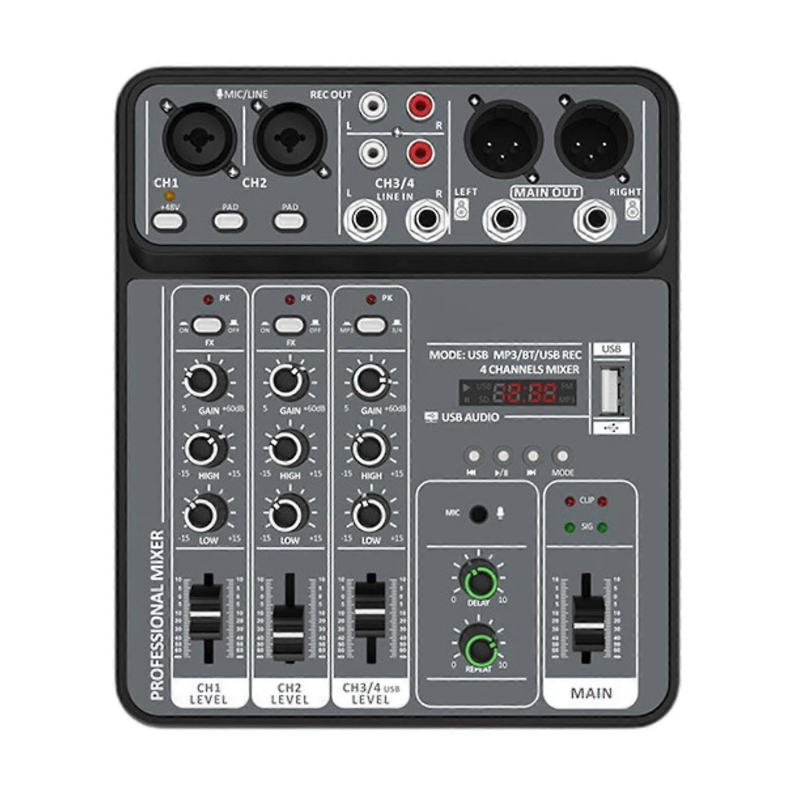 4-channel Sound Mixer Portable Mixing Sound Board for Broadcast Party Studio