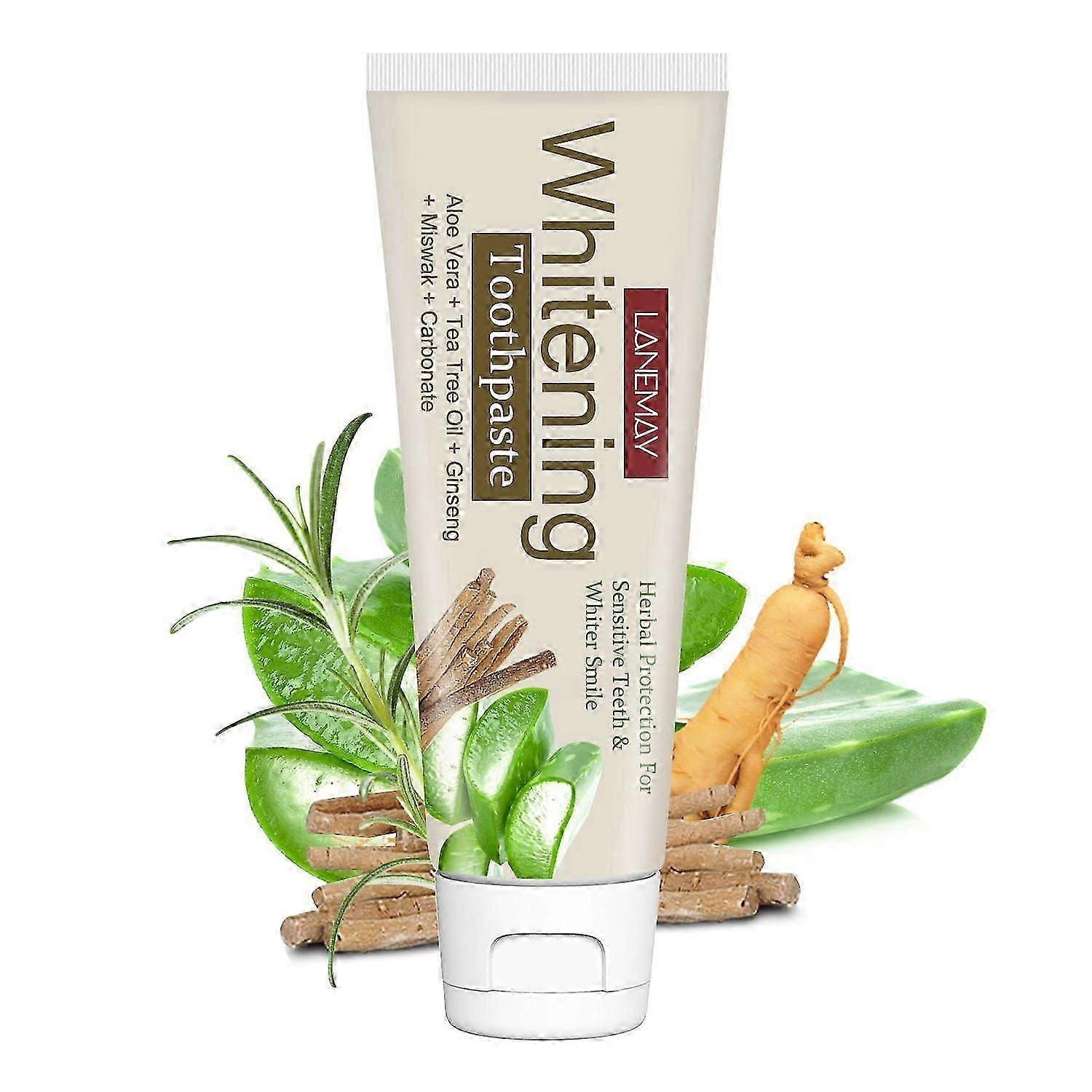 Natural Whitening Toothpaste for Sensitive Teeth & Whiter Smile, Infused with Aloe Vera, Tea Tree Oil, Ginseng, Miswak, Carbonate, Unisex Adults
