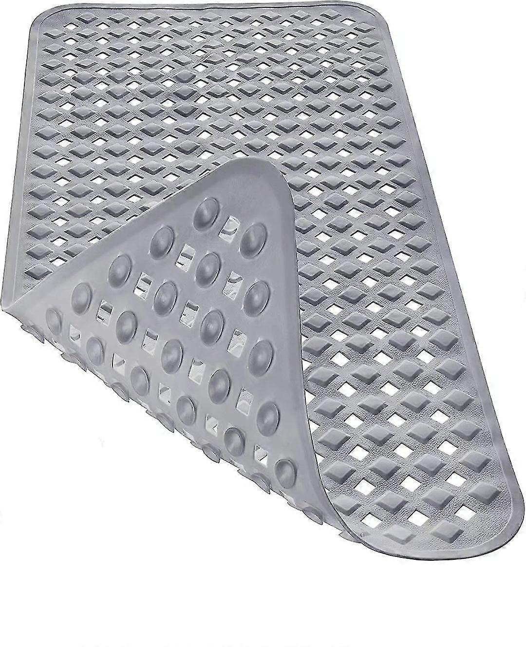 sensitive skin non-slip bath mat 88x39cm, bpa free | mildew resistant machine washable shower mat (grey)