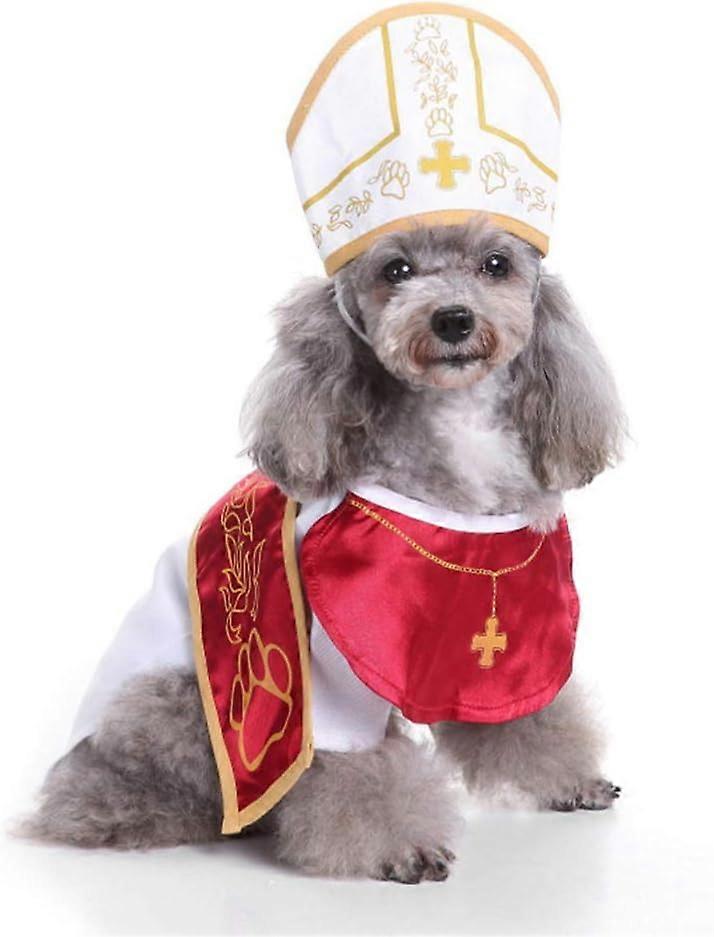 Pope Dog Costume-Holy Pope Hound Dog Pet Costume Halloween Godfather Suit with Hat-Size M