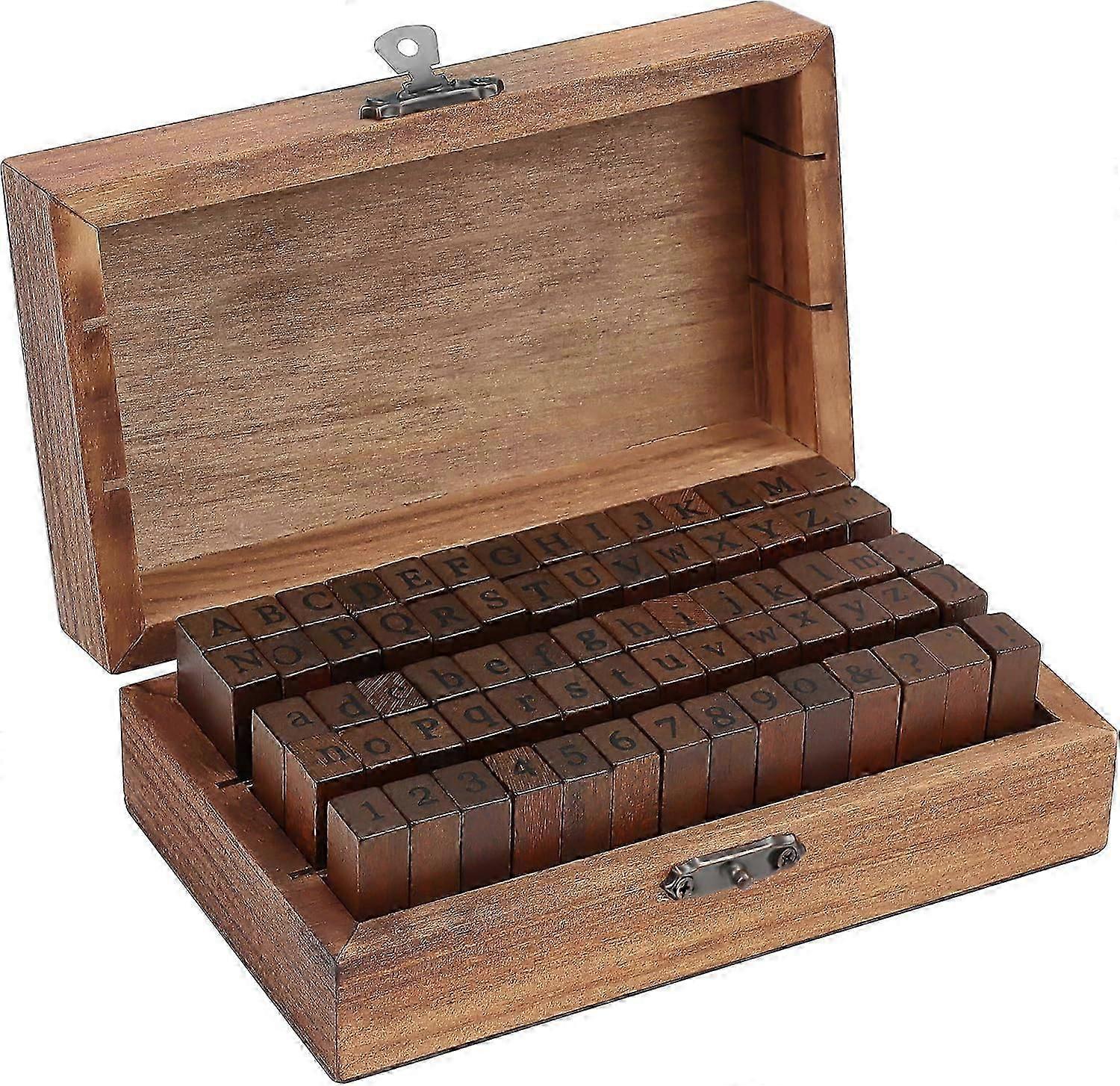 Alphabet Letter Stamp with Numbers and Symbols (70 Pcs) - Multifunctional Wood and Rubber Stamp Kit with Vintage Box - Wood Stamp Scrapbooking, Cards