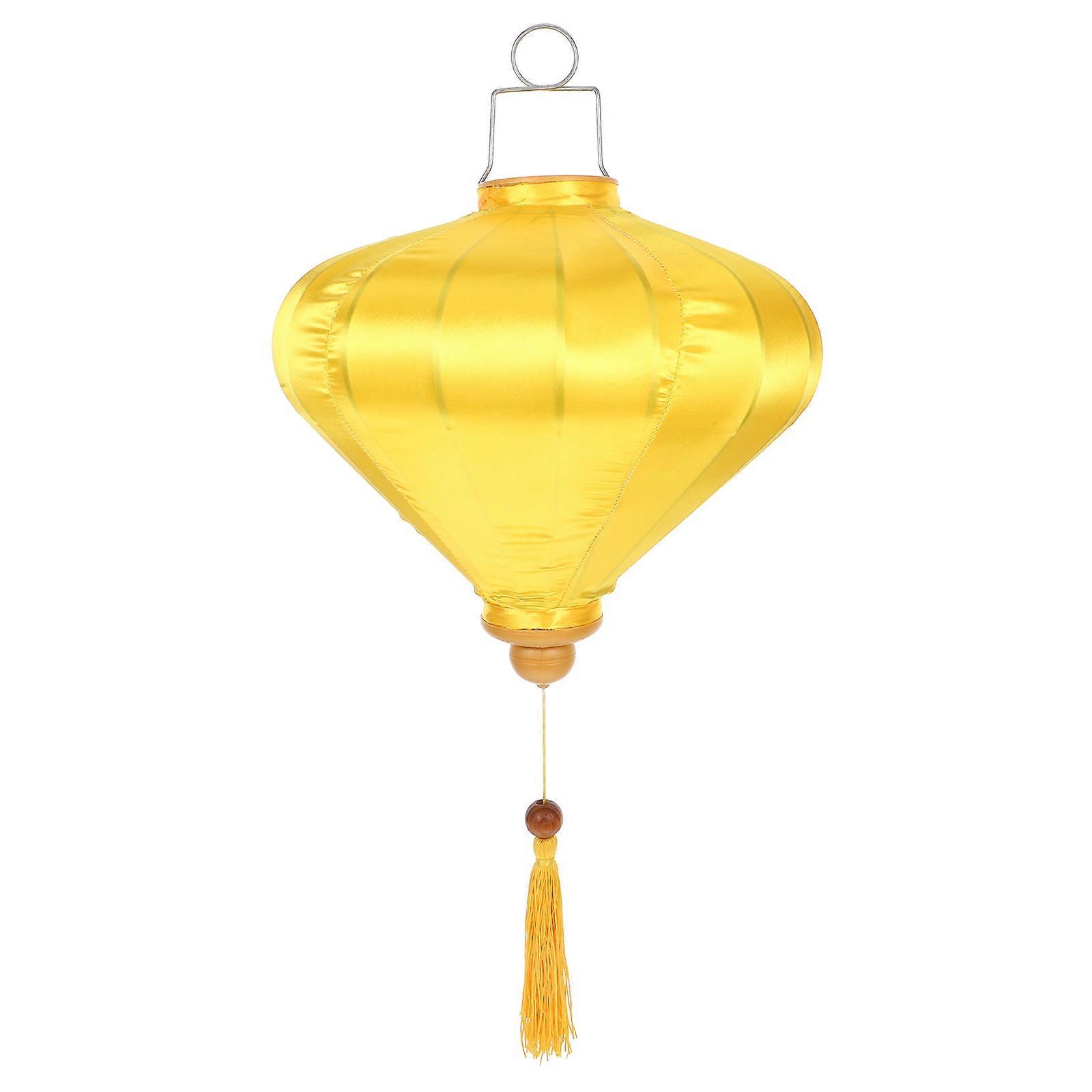 The unique festive lantern decoration is a perfect way to bring joy and fun. with easy installation, this lantern is a versatile decoration that can be hung in outdoor, balcony, and other spaces to create a warm and inviting atmosphere. Features - Color: Yellow -Material:Silk, plastic, iron alloy, polyester - Size: 39.00X30.00X30.00cm/15.33X11.79X11.79in -Note: Random of the Pattern -Practical material: Crafted with silk, plastic, iron alloy and polyester material, ensuring durability and a sleek appearance. - and unique design: The lantern adds of elegance and uniqueness to any occasion. -Versatile hanging decoration: Perfect for both indoor and outdoor use, can be used as a decorative piece for outdoor events, creating a festive atmosphere. -Vibrant color: The diamond-shaped Vietnamese is an ideal decoration for Vietnamese festival or new year celebrations. -Easy installation: The lantern decoration can be easily installed, allowing users to quickly and effortlessly enhance their space with of charm. Package list: 1 x hanging lantern