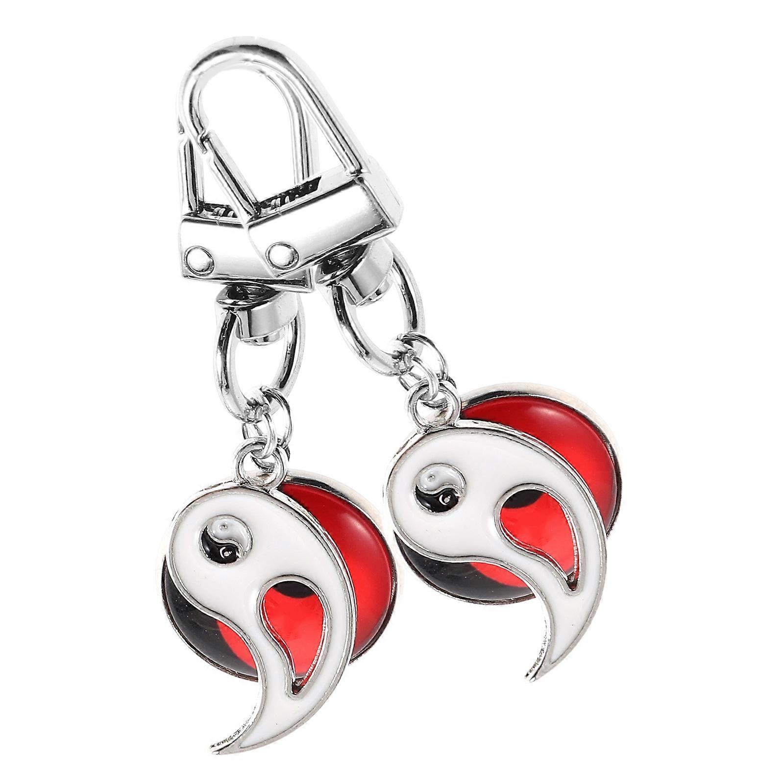 Ideal for both men and women, this keychain serves as a thoughtful present for loved ones. Its durable construction ensures long-lasting use, while the elegant design makes it suitable for various occasions. Whether you're attaching it to your car keys or using it as a bag charm, this keychain adds a touch of sophistication to your everyday accessories. Features -Color:Multi -Material:Alloy -Size:6.00X2.20X0.50cm/2.36X0.86X0.20in -Stylish design: the tai chi bagua motif adds a touch of elegance and uniqueness, making it a fashionable accessory for any occasion -Durable: the time alloy material is designed to withstand daily wear, keeping your keychain looking pristine -Couples present: a thoughtful present for couples, the matching left right design symbolizes harmony and connection -Fade resistant colors: the oil drip process ensures the colors remain vibrant and eye catching, even with prolonged use -Functional decoration: use it as a keychain for cars, homes, or as a decorative charm to enhance your everyday items Package list: 1 pair x Bagua Keychain