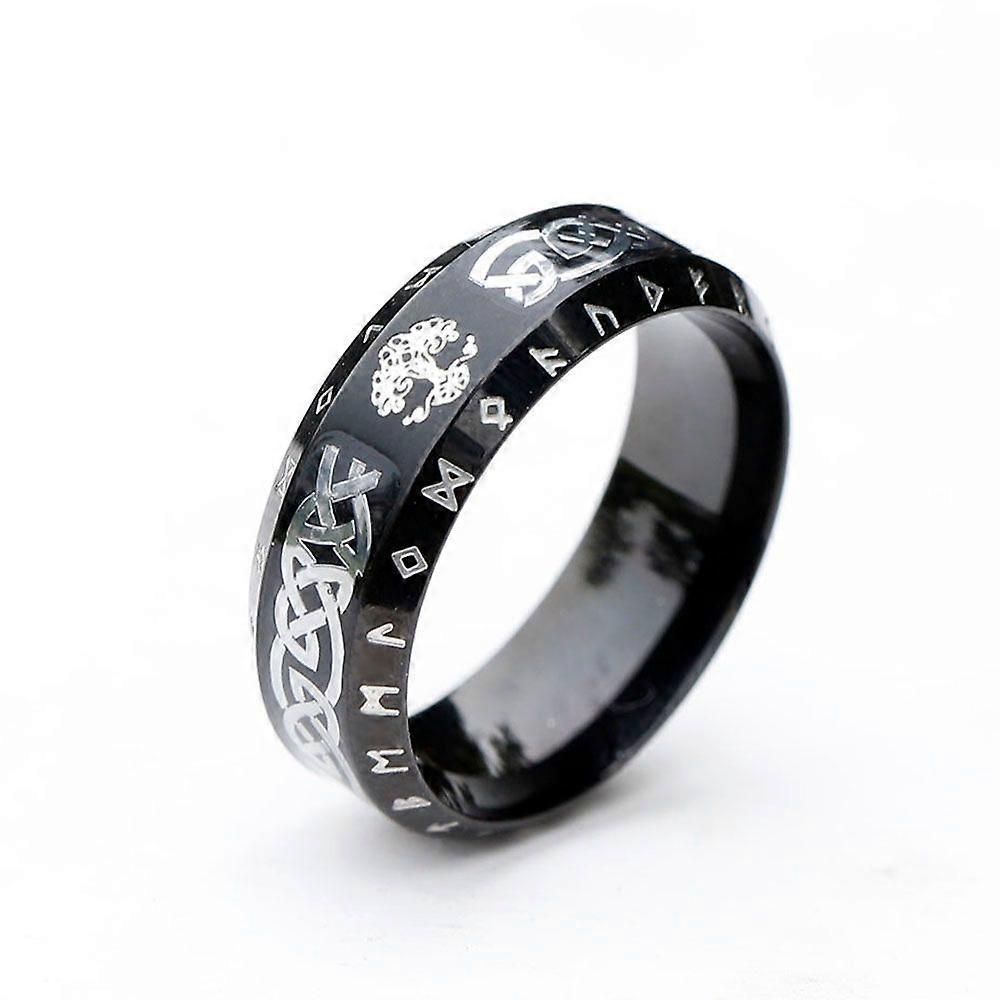 Stainless Steel Viking Norse Ring With Letters Runes Vintage Style Tree Of Life Gift For Men Fashion Simplicity