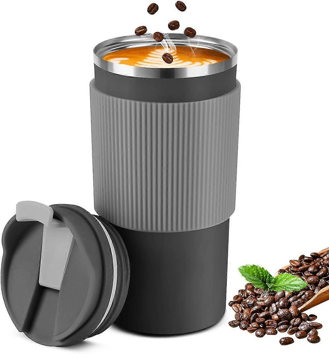 Insulated Coffee Mug(Grey 1), 450ml Stainless Steel Travel Mug with Lid, Cafe Insulated Mug for Coffee, Tea and Beer