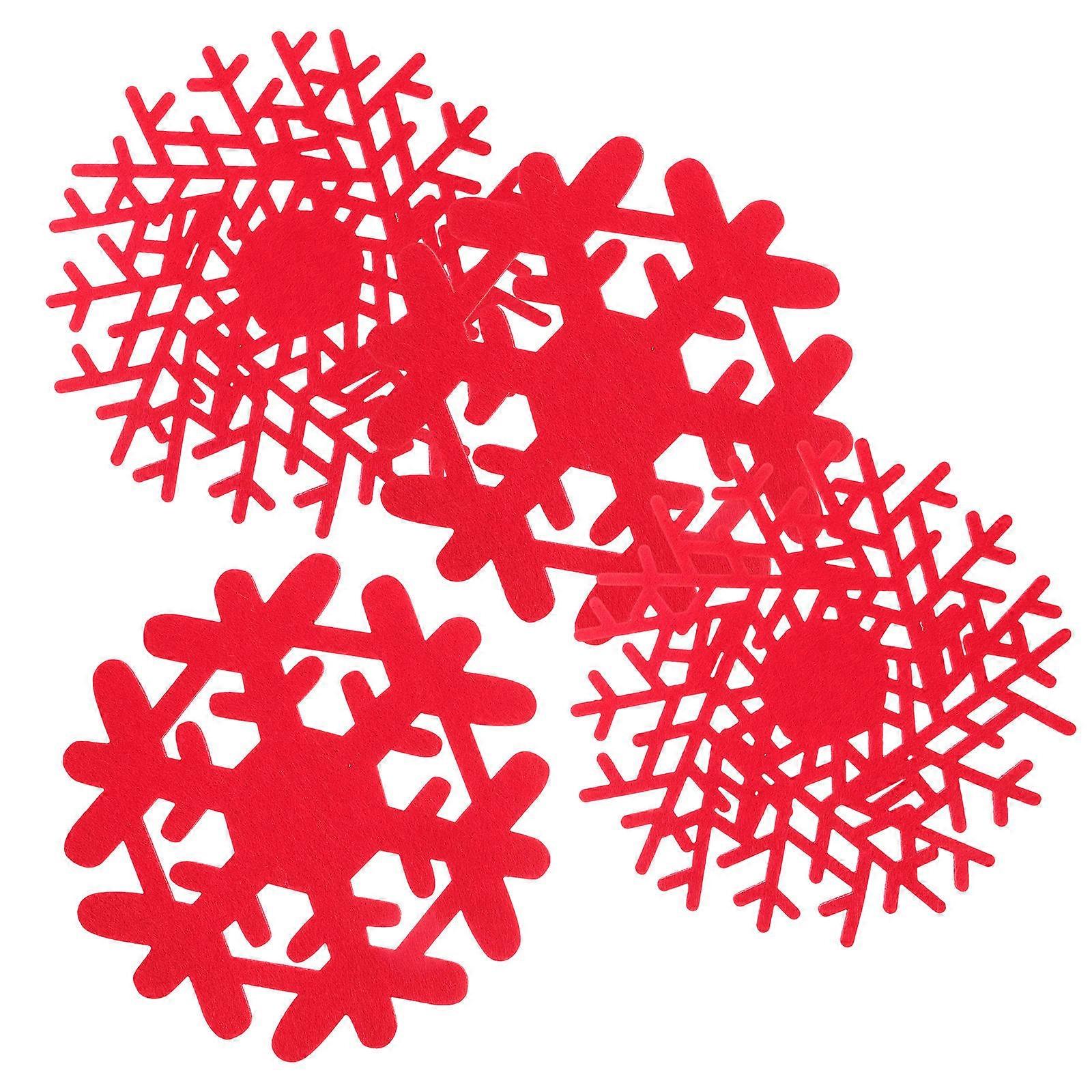 Heat Insulation Mat Snowflake Christmas Family Gathering Red Cloth 4Pcs