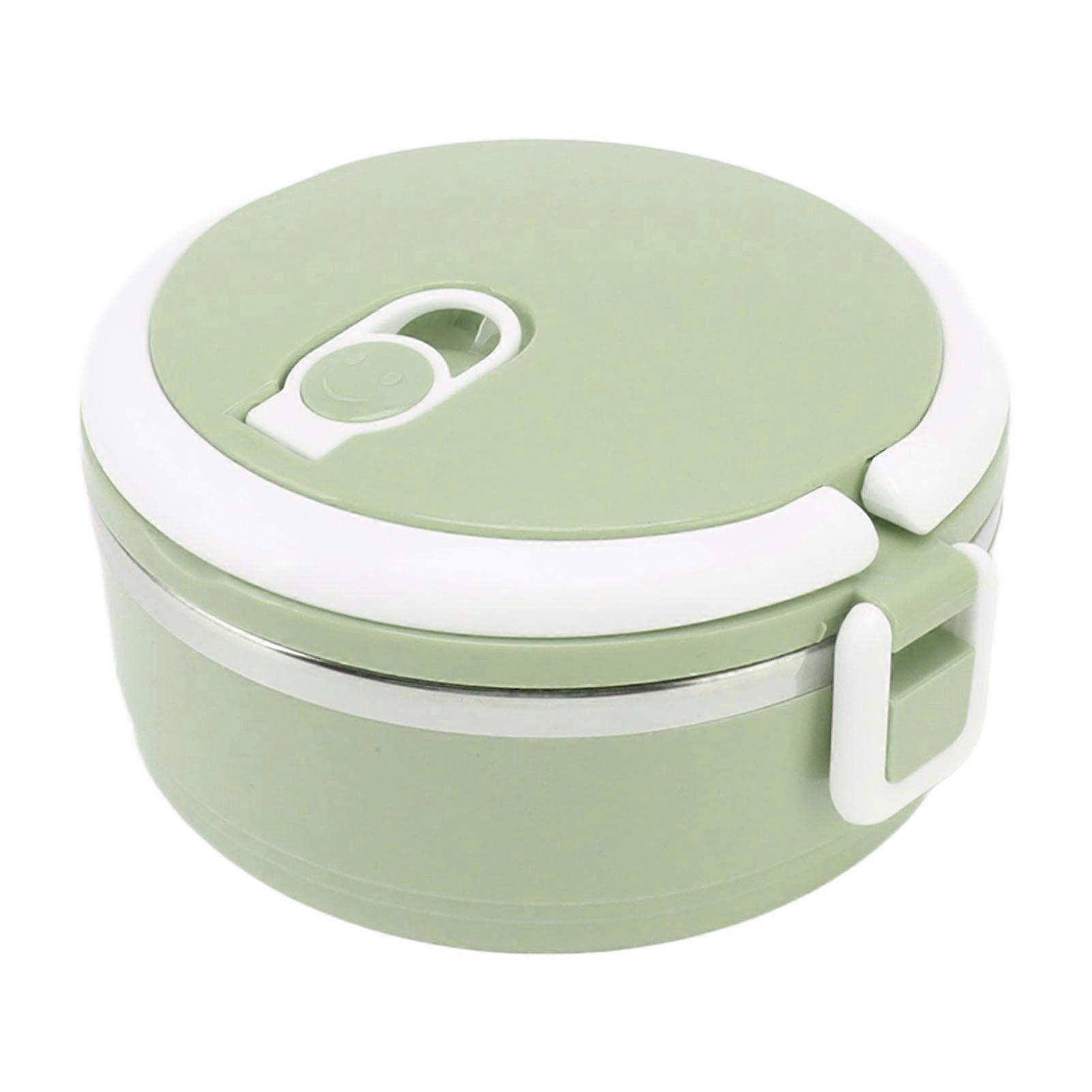 Insulation Lunch Box Stainless Steel Silicone Round Breathable Holes Ergonomic Handle Bento Box for School Dark Green